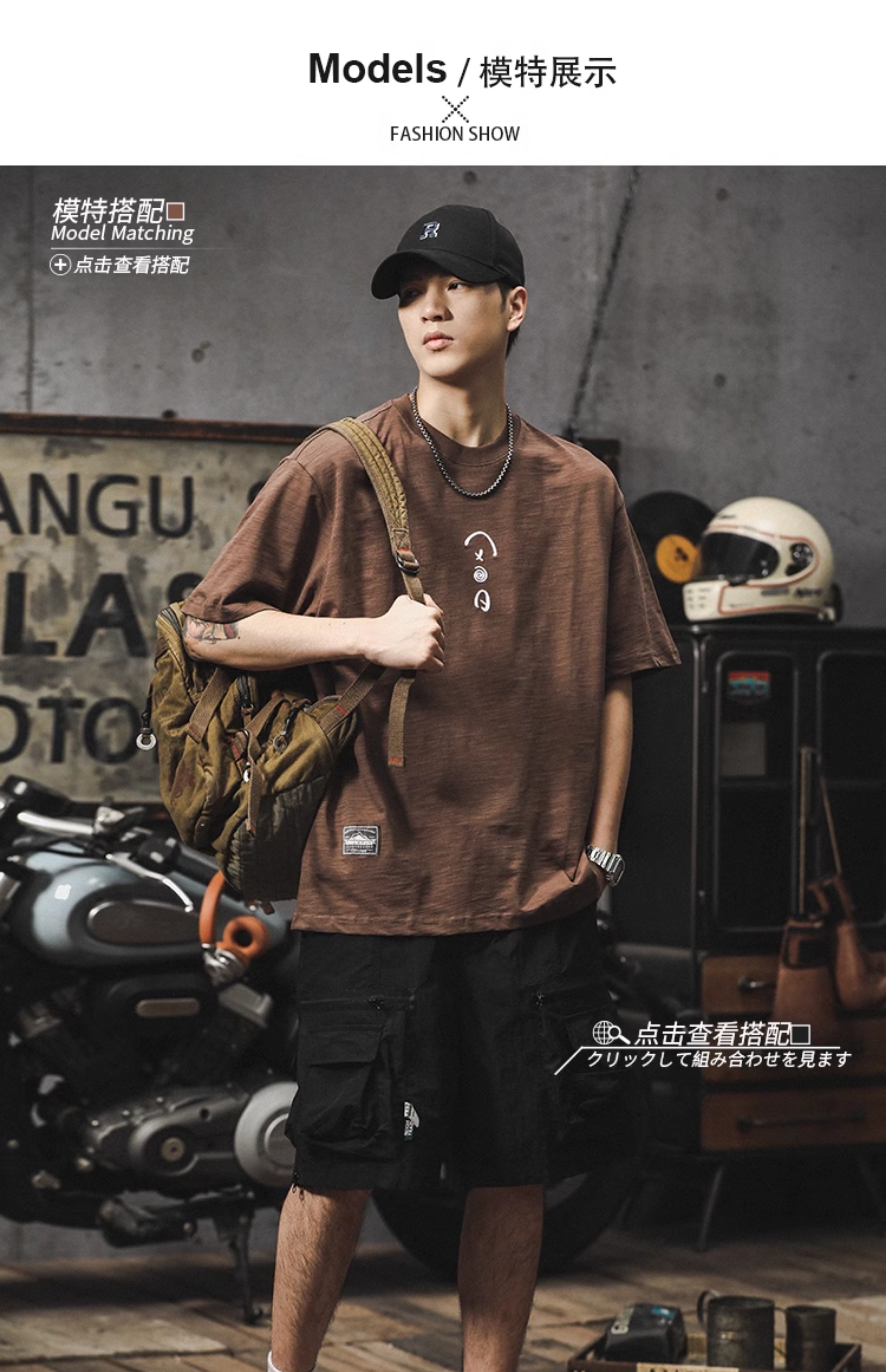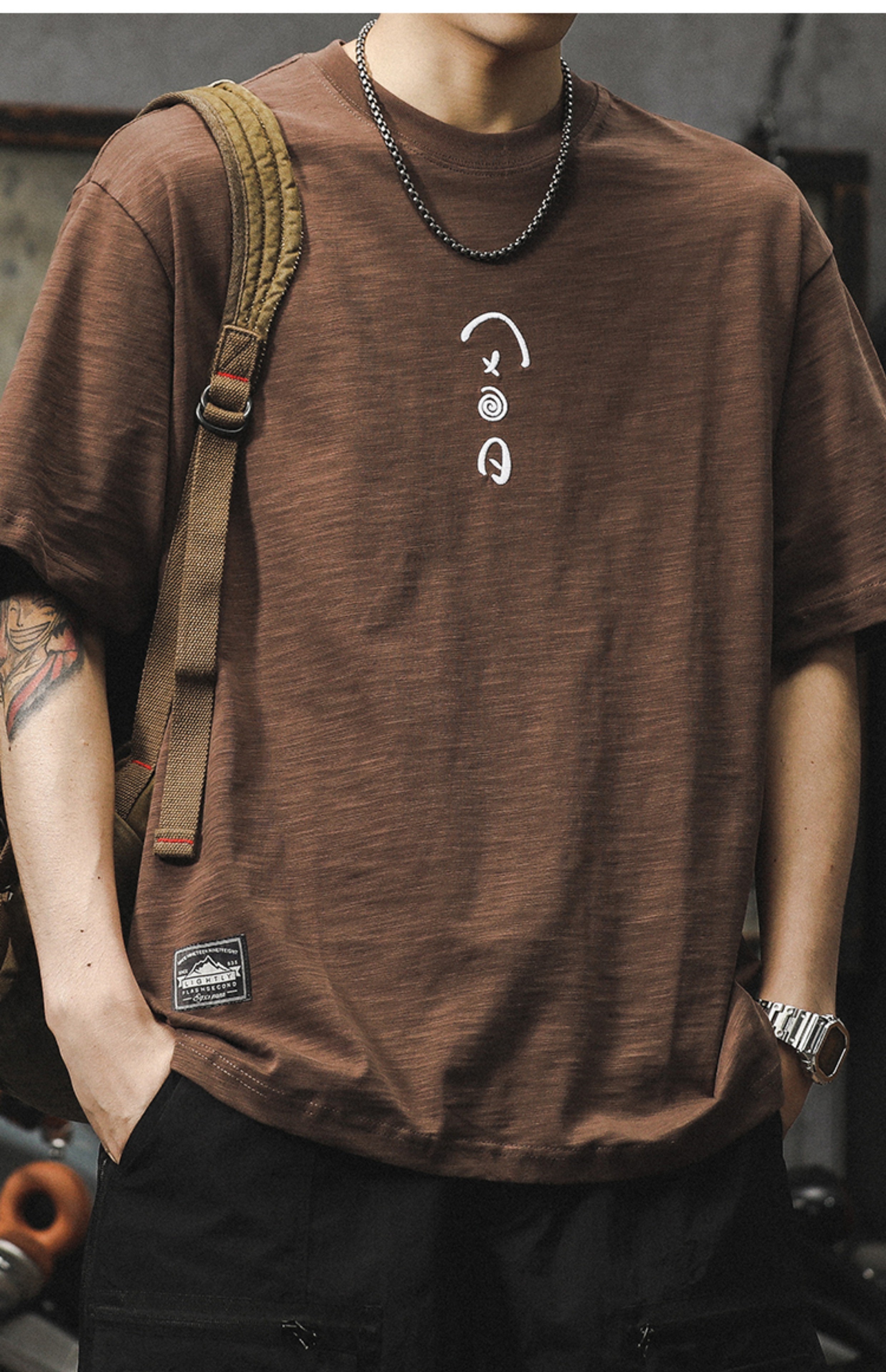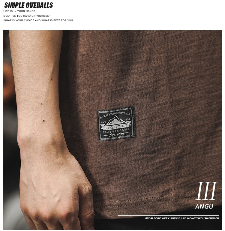罗蒙(ROMON)美式复古短袖男夏季重磅竹节棉t恤设计感百搭宽松体恤刺绣上衣潮 卡其色 重磅230克 XL 140-160斤