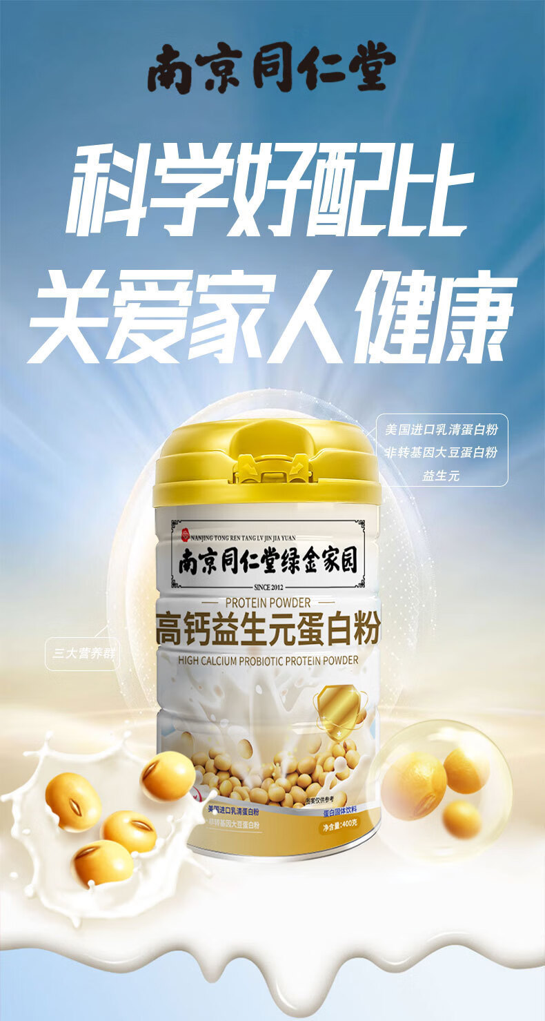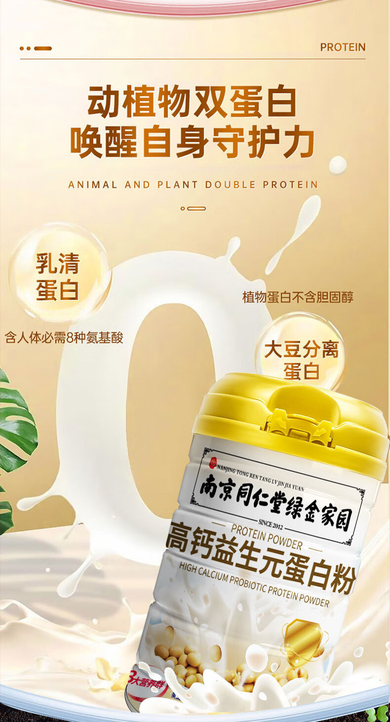 南京同仁堂高钙益生元蛋白粉中老年增强免疫提高抵抗力搭配高钙骨胶原非 2罐装*800g老当益壮送礼品袋
