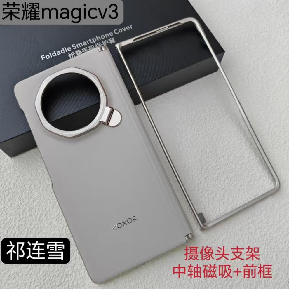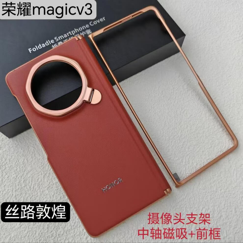 荣耀专配新荣耀magicv3折叠屏手机壳磁吸铰链全包保护壳v3金属支架磁吸中轴v3防摔新潮男女后壳出口海 原厂密封包装中轴磁吸保护壳【黑色】带摄像头支架+前 荣耀Magic V3