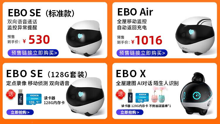 enabotEBO Air机器人可移动监控摄像头老人小孩宠物AI智能玩伴陪伴机器人 EBO Air【64G内存】