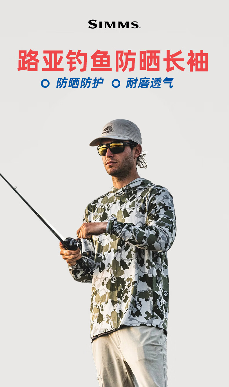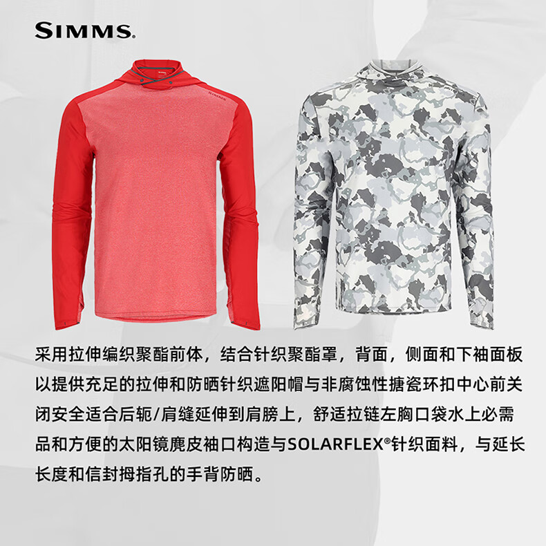 SIMMS美国钓鱼服夏季UPF50冰丝防晒衣速干透气长袖带帽T恤海钓服 23款 13658 红色 M
