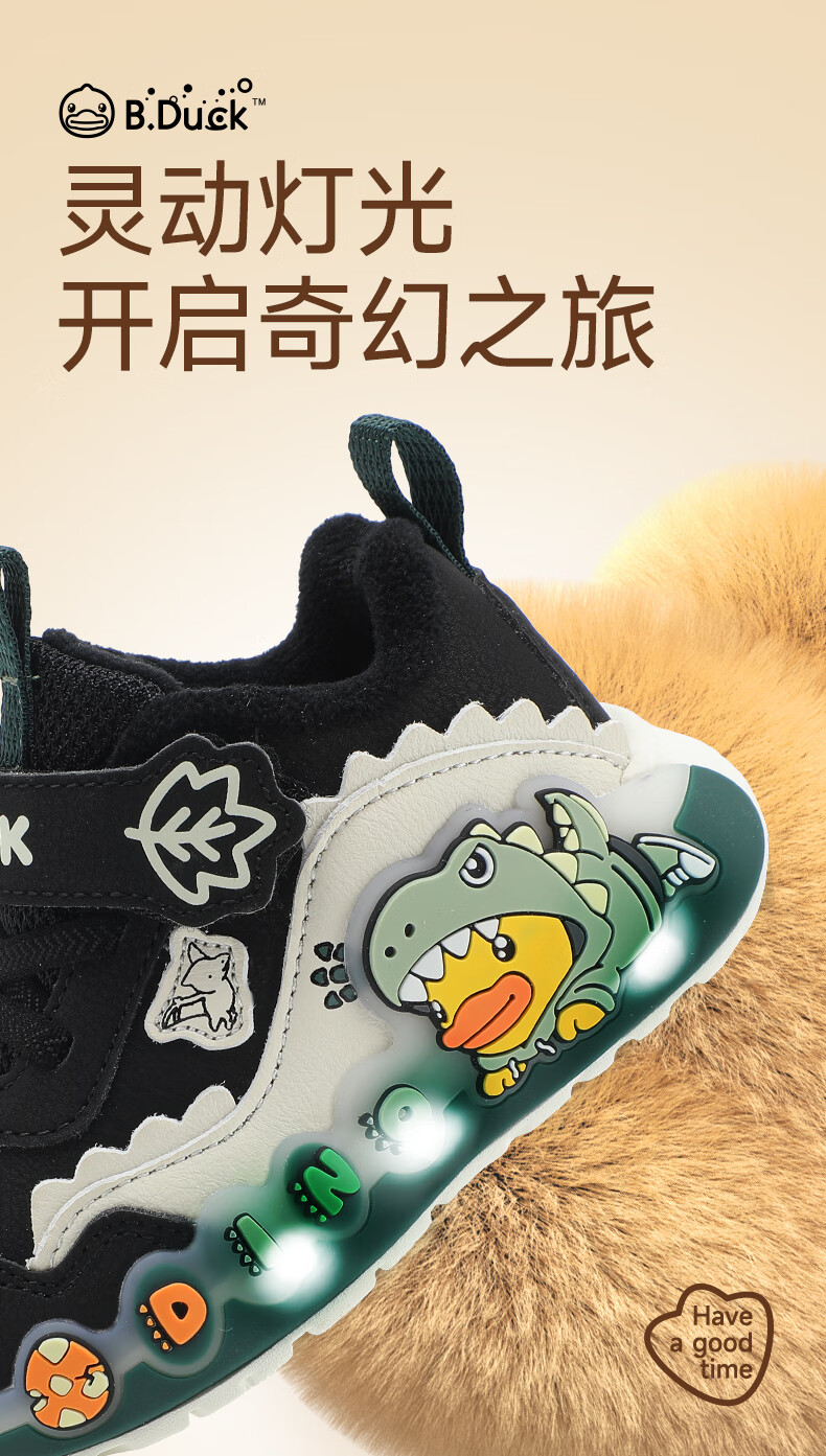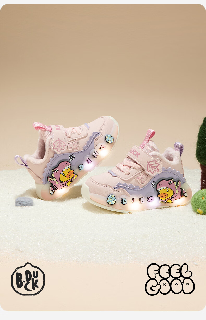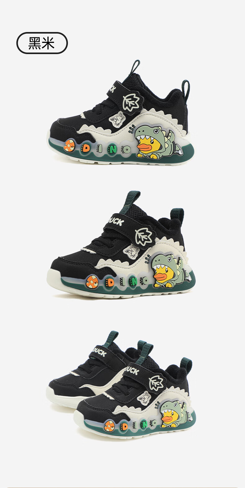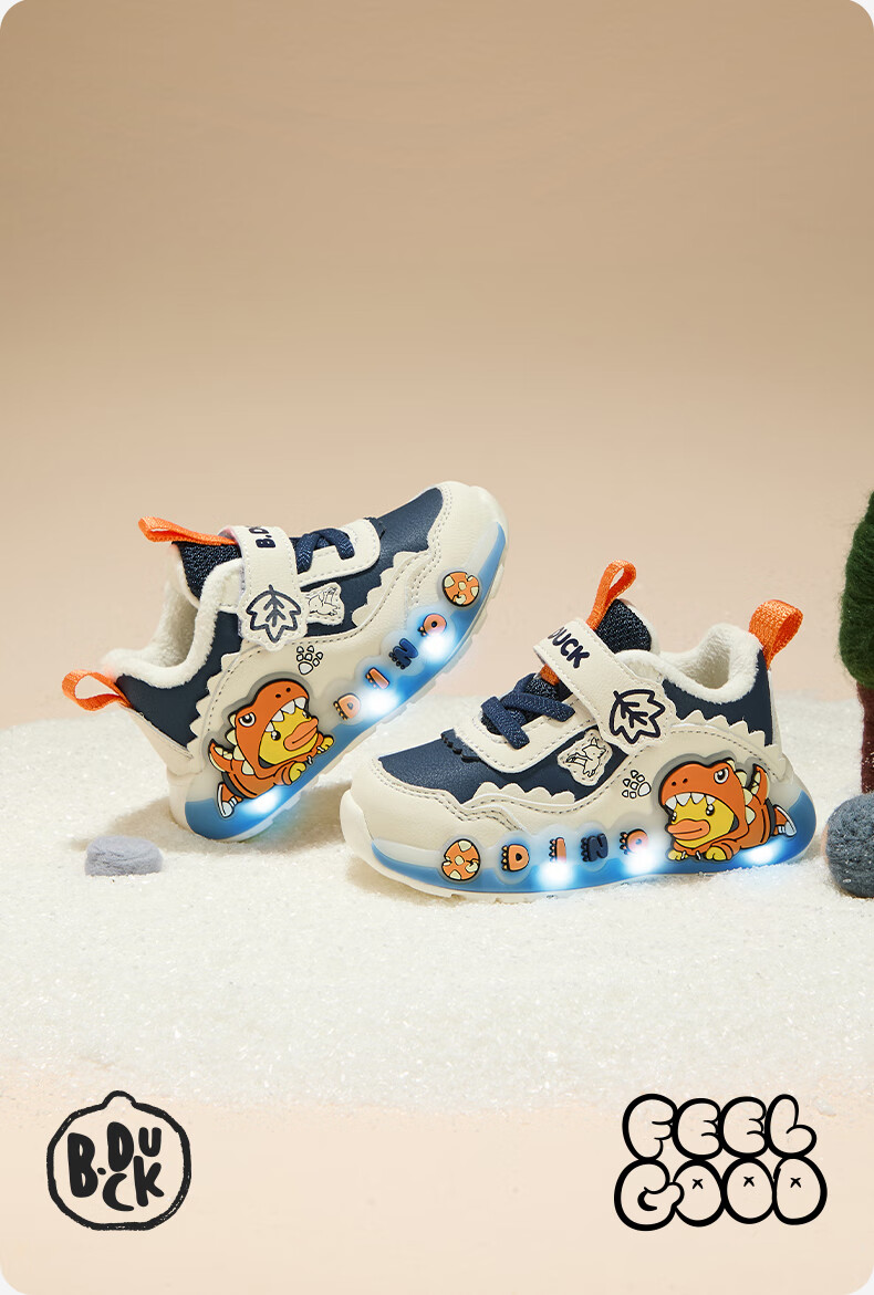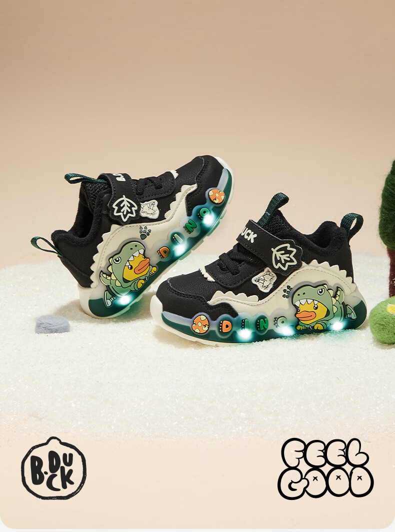 B.Duck小黄鸭儿童鞋男童运动鞋2025秋冬新款小童亮灯鞋发光宝宝鞋子革面 831白绿(夏季单网透气款) 26 码 适合脚长15.5-16.0cm