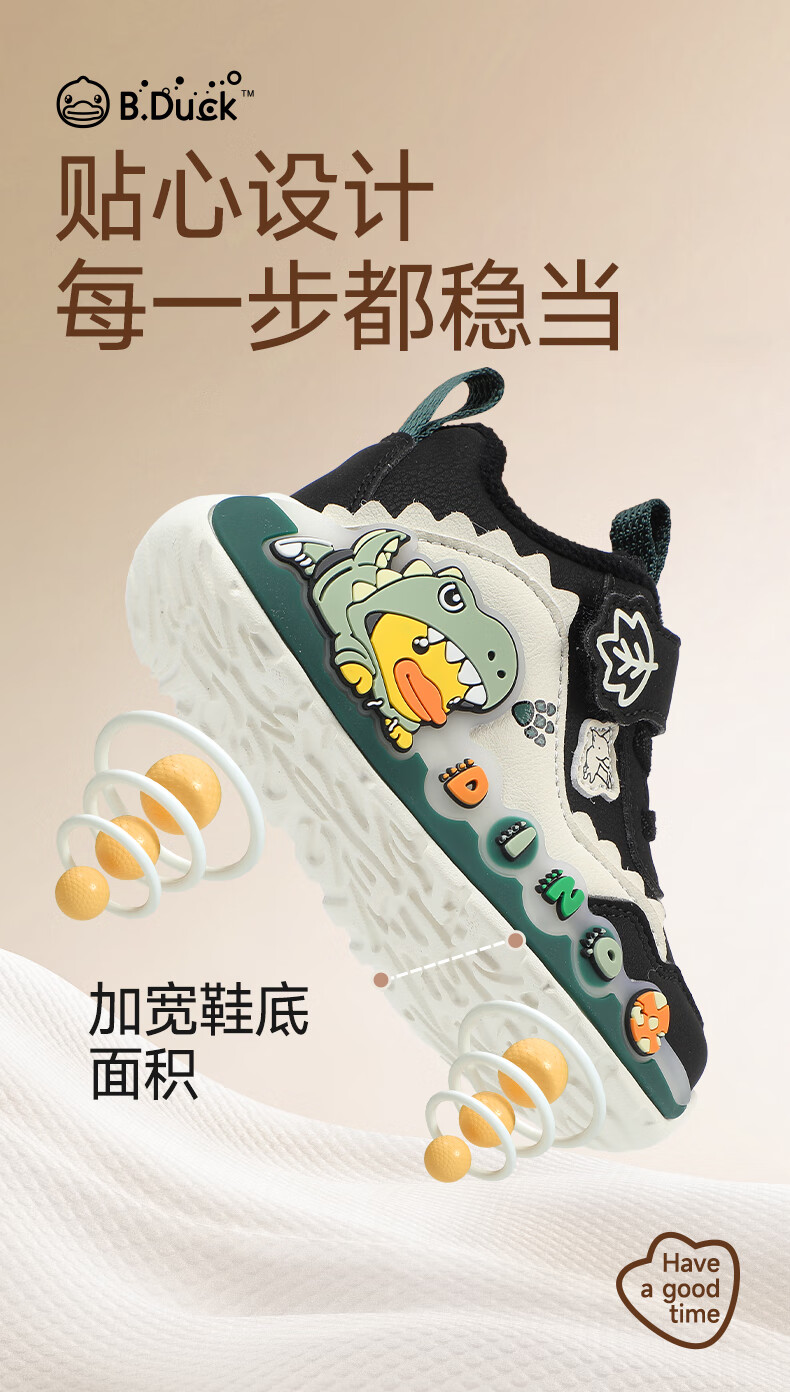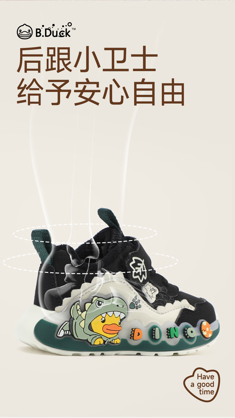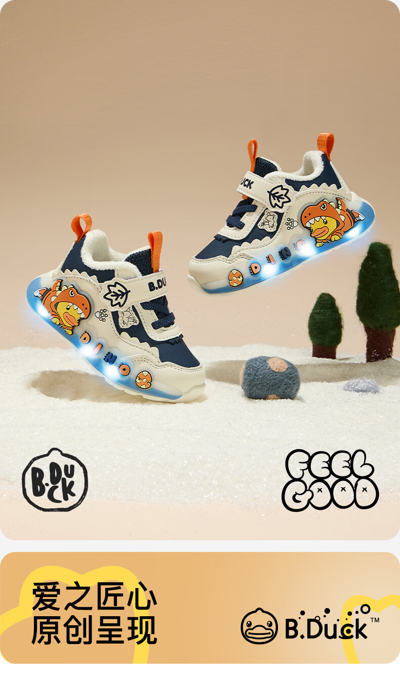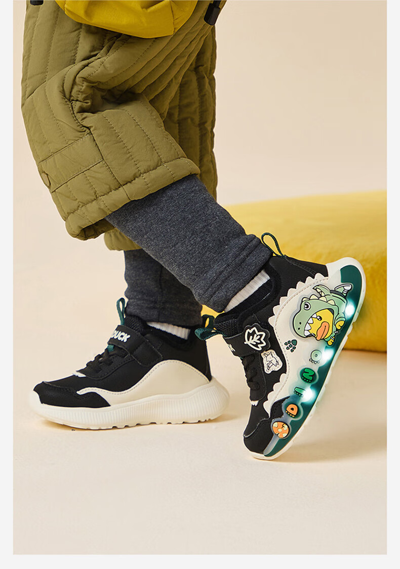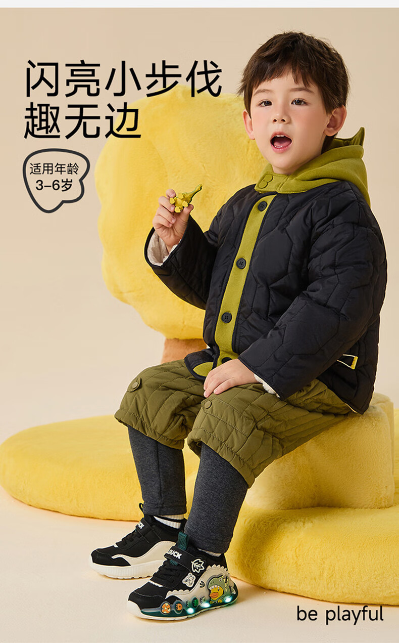 B.Duck小黄鸭儿童鞋男童运动鞋2025秋冬新款小童亮灯鞋发光宝宝鞋子革面 831白绿(夏季单网透气款) 26 码 适合脚长15.5-16.0cm