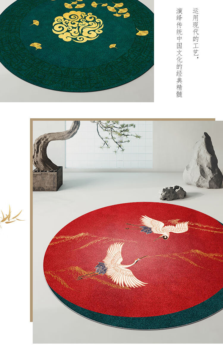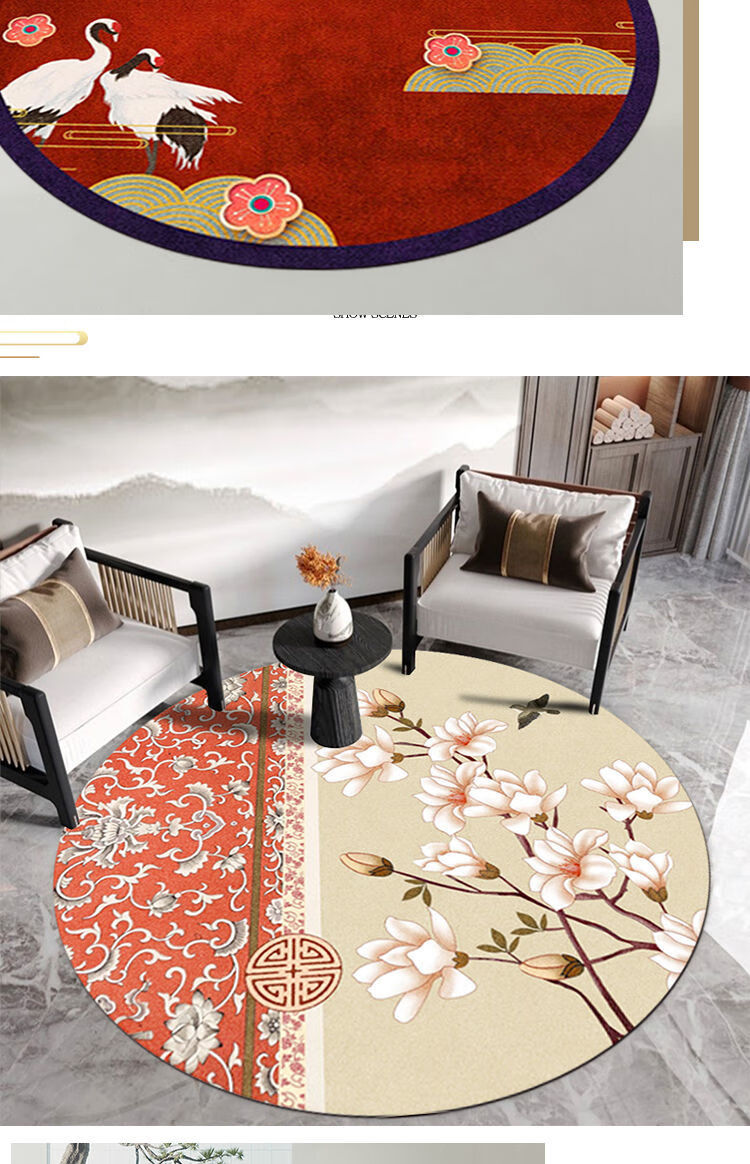 9740人收藏新中式圆形地毯客厅茶几毯中国风卧室床边毯吊篮地垫防 琴忆挽梦 直径1.6米
