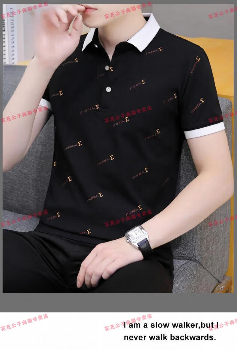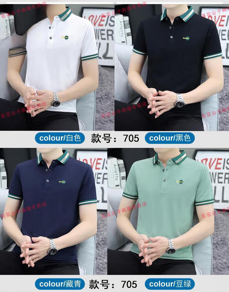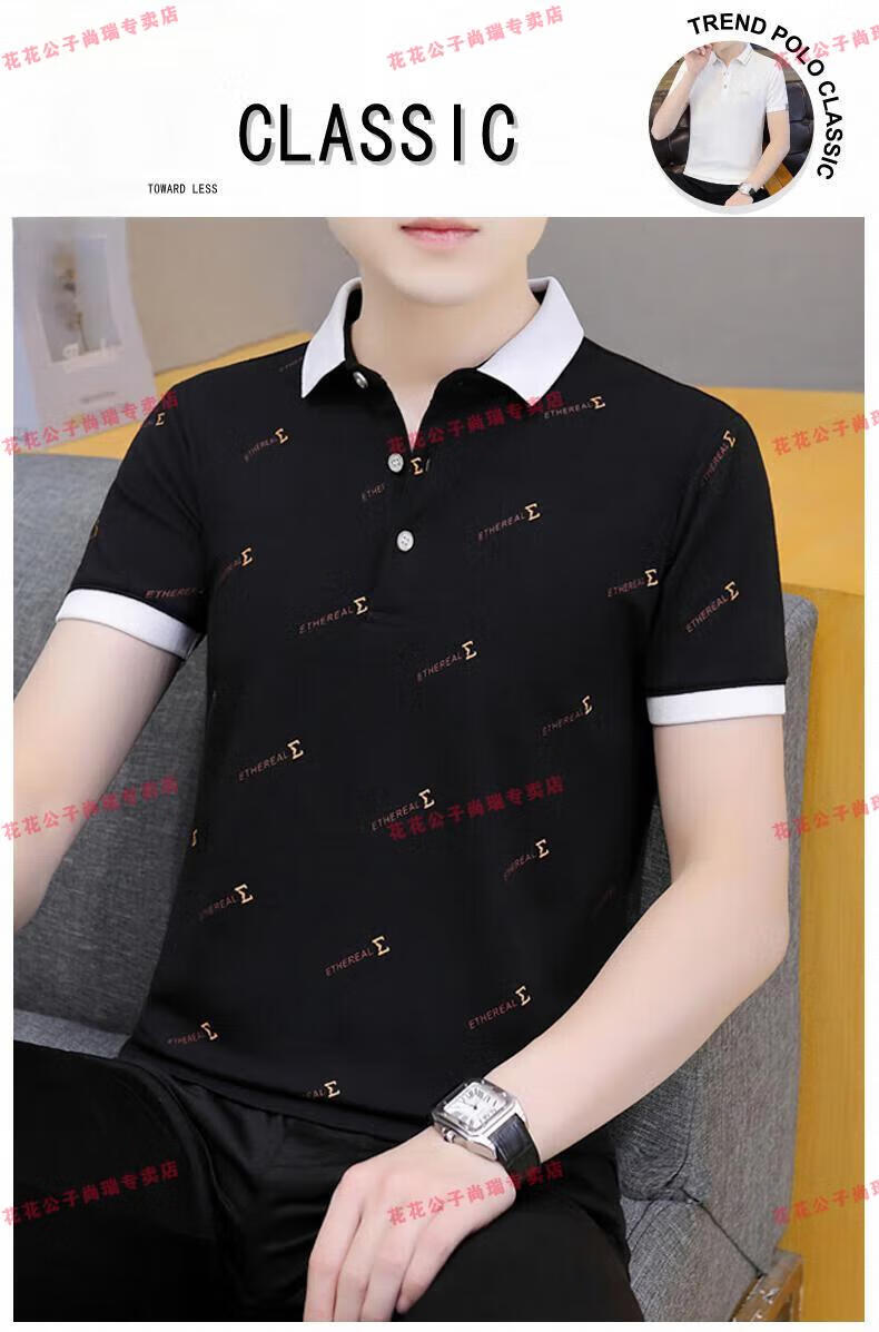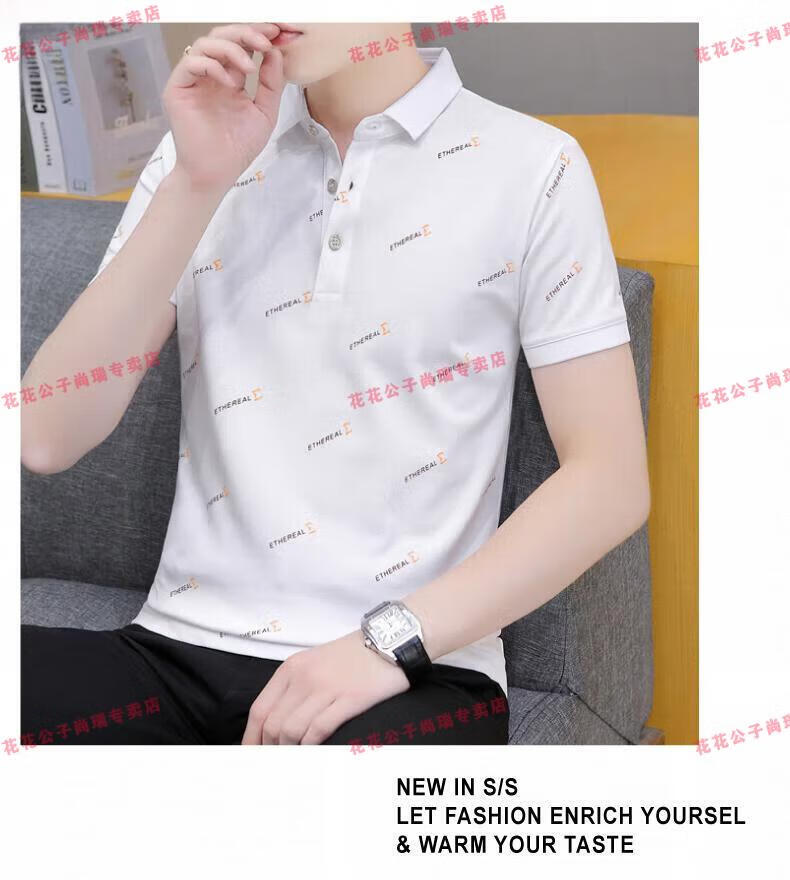 花花公子夏季男士短袖t恤翻领polo领衫潮流韩版冰丝半袖体恤潮牌男装上衣 679白色 L  (适合120-135斤)