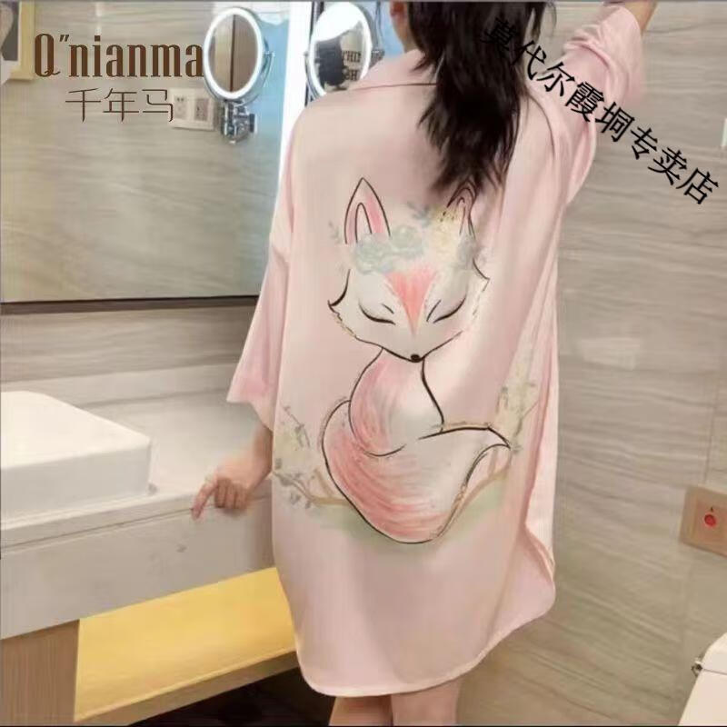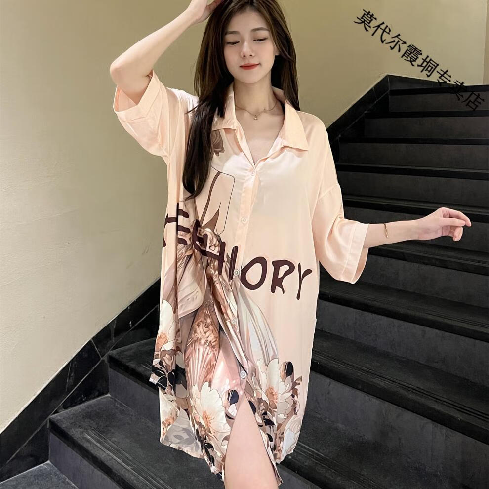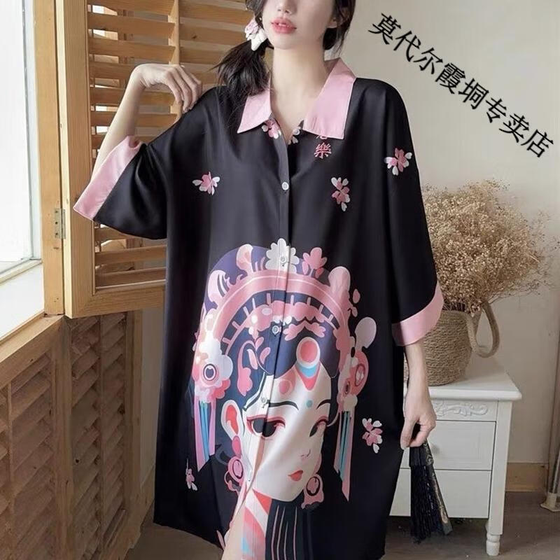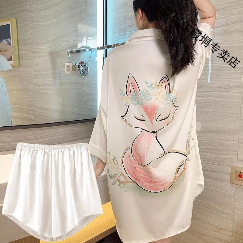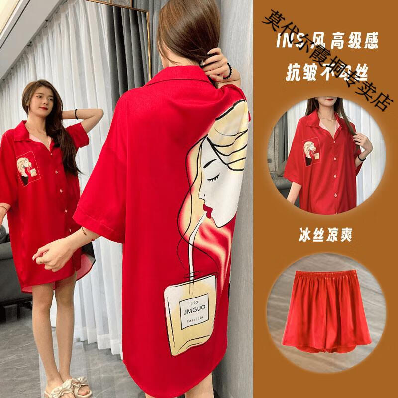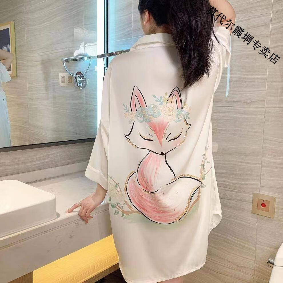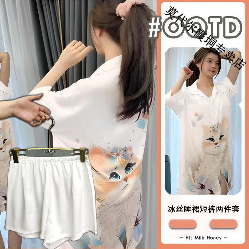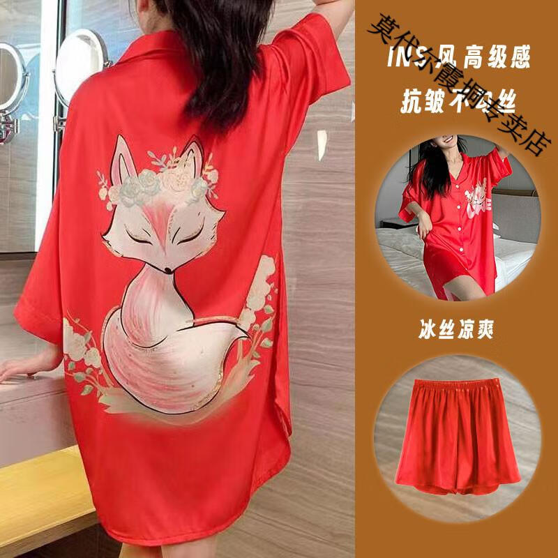 Pyjama modal sexy et pratique pour les rapports sexuels chemise de nuit pour femme été soie glacée 2025 nouvelle jupe cardigan ample à manches courtes jupe style petit ami 719 chat orange XL 115-130Jin Jin est égal à 0,5 kg