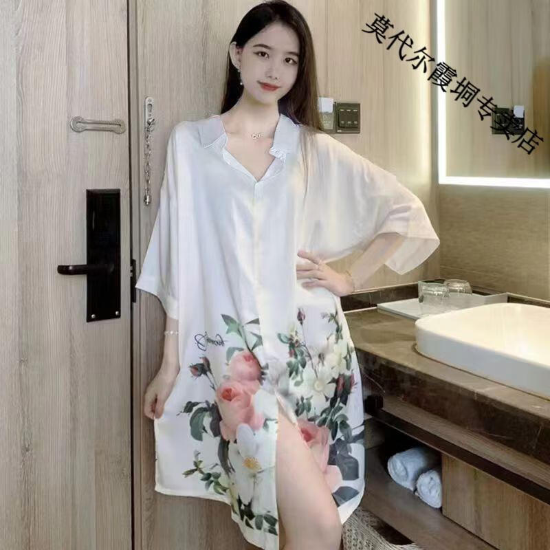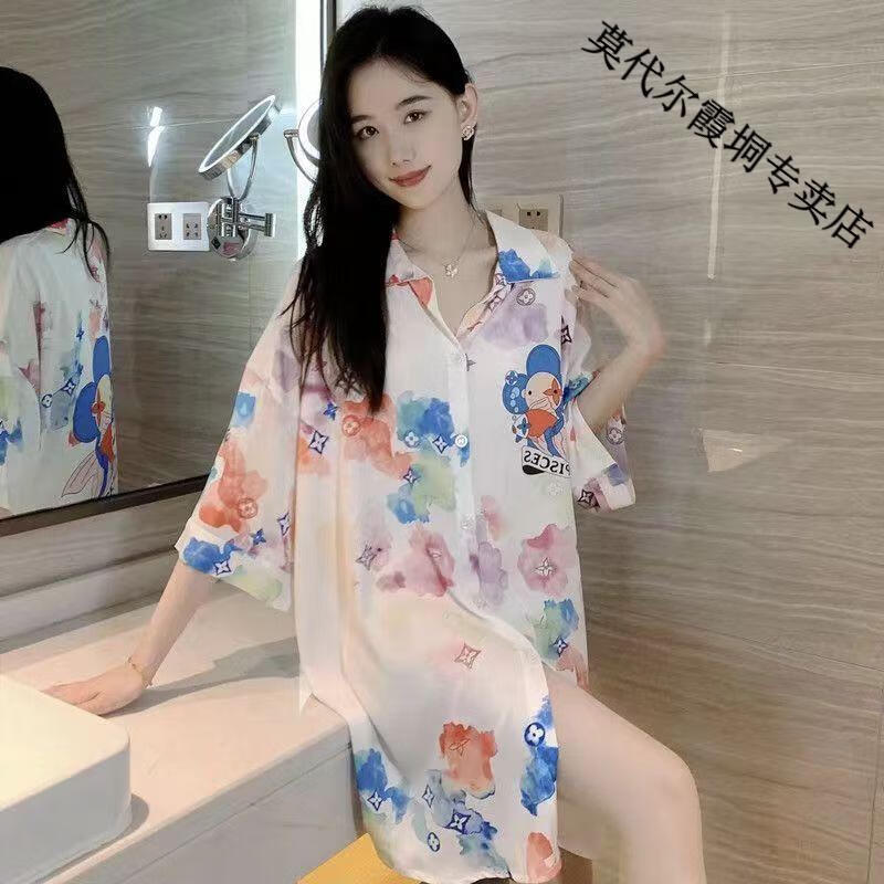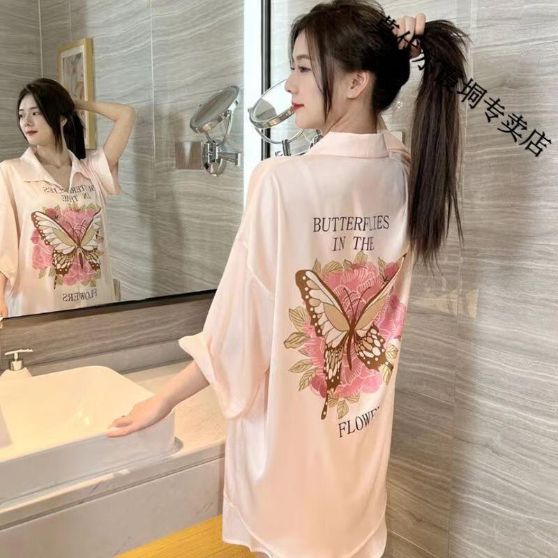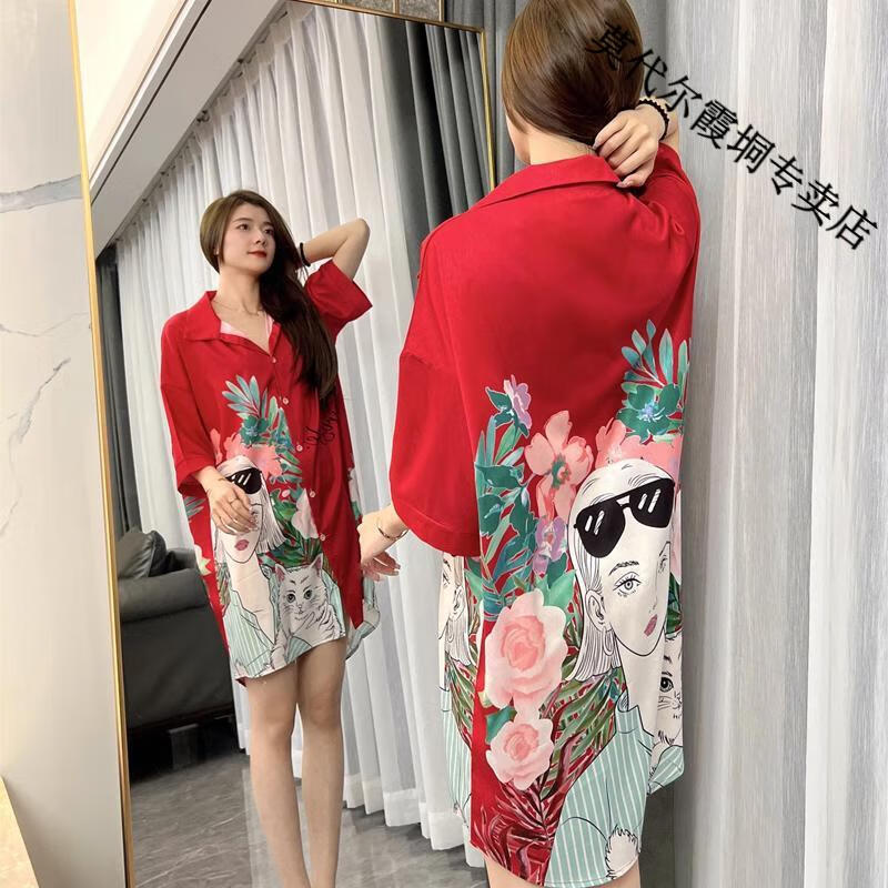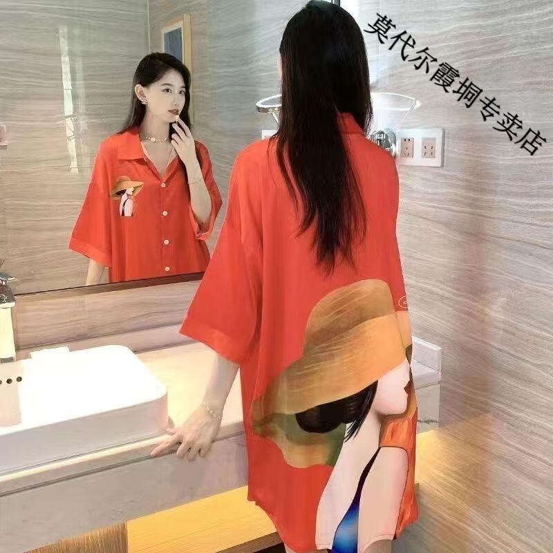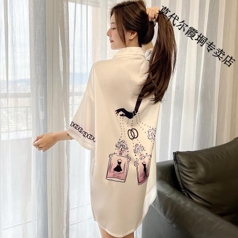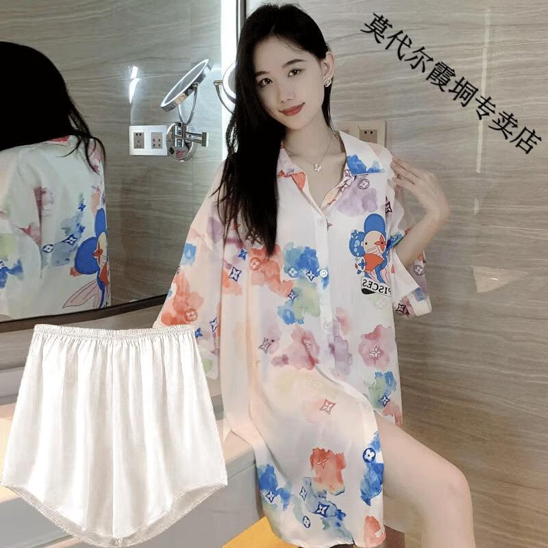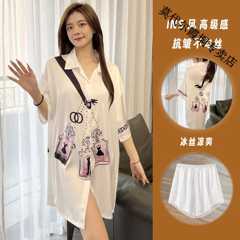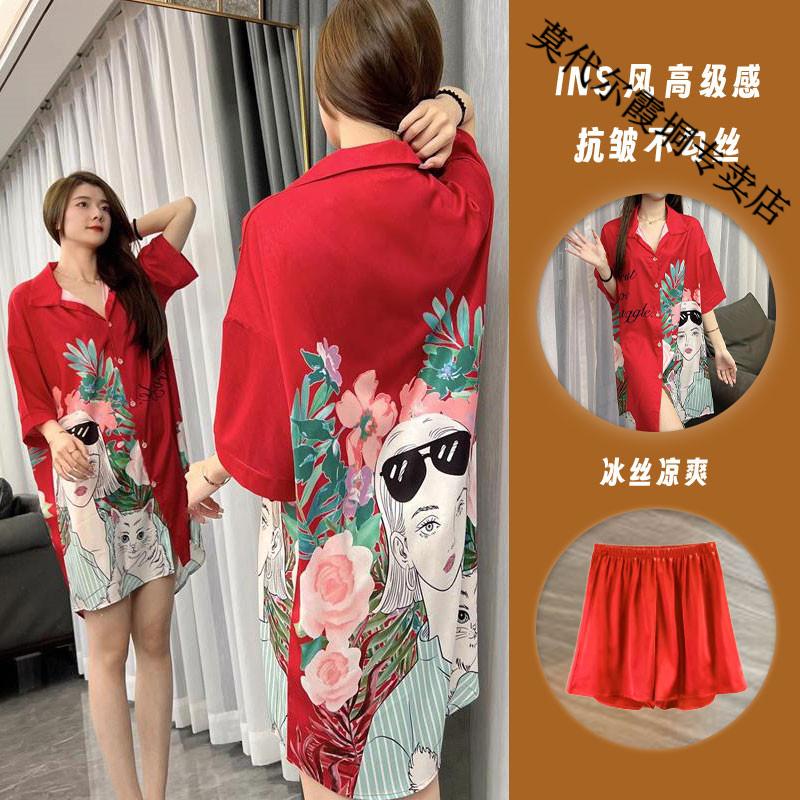 Pyjama modal sexy et pratique pour les rapports sexuels chemise de nuit pour femme été soie glacée 2025 nouvelle jupe cardigan ample à manches courtes jupe style petit ami 719 chat orange XL 115-130Jin Jin est égal à 0,5 kg
