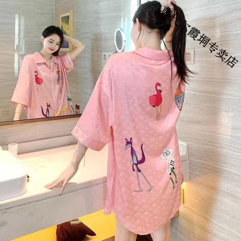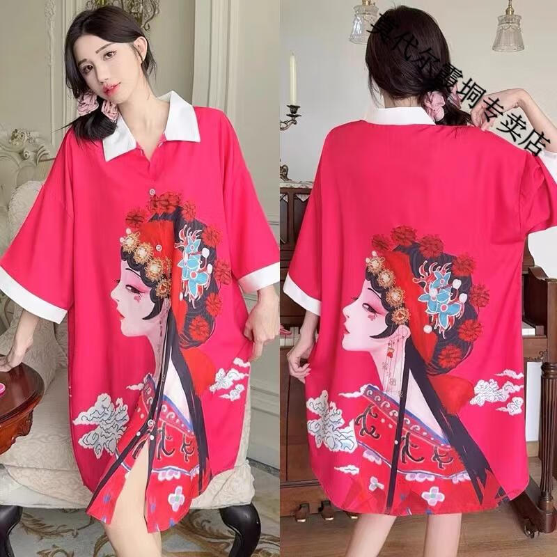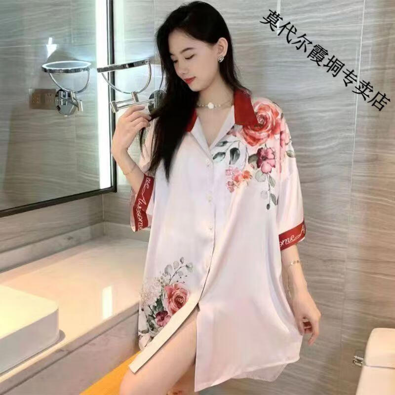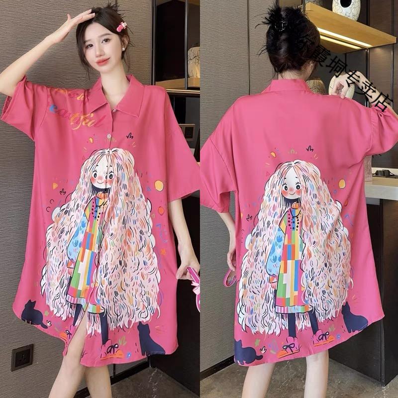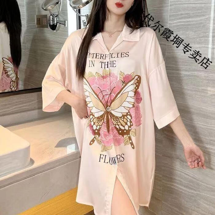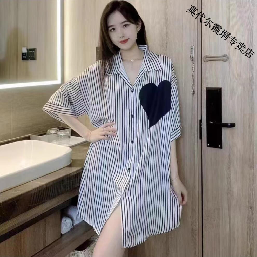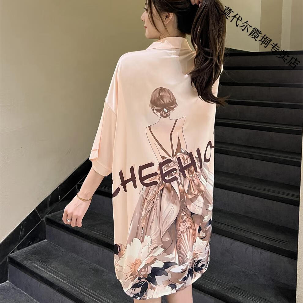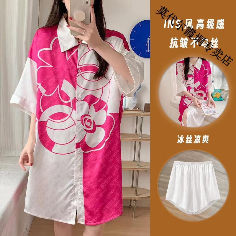 Pyjama modal sexy et pratique pour les rapports sexuels chemise de nuit pour femme été soie glacée 2025 nouvelle jupe cardigan ample à manches courtes jupe style petit ami 719 chat orange XL 115-130Jin Jin est égal à 0,5 kg