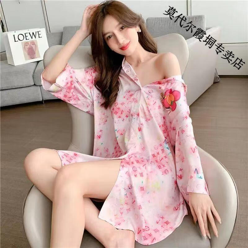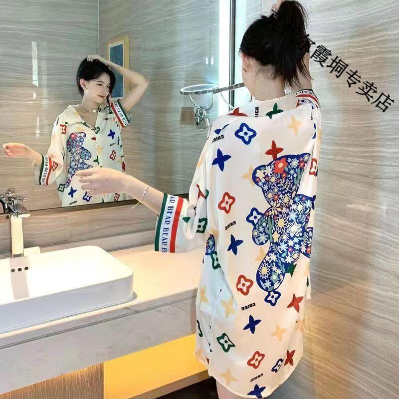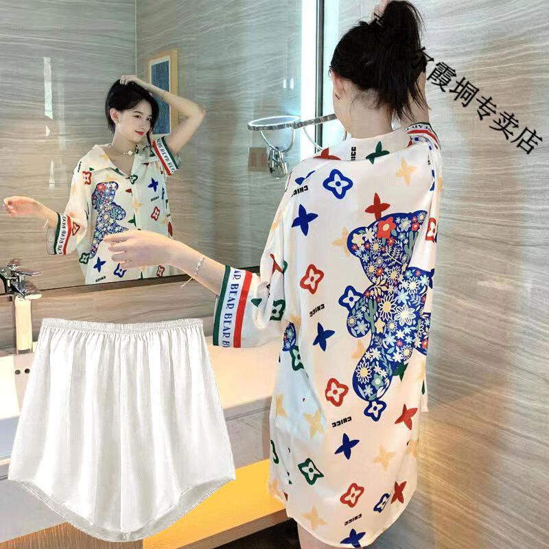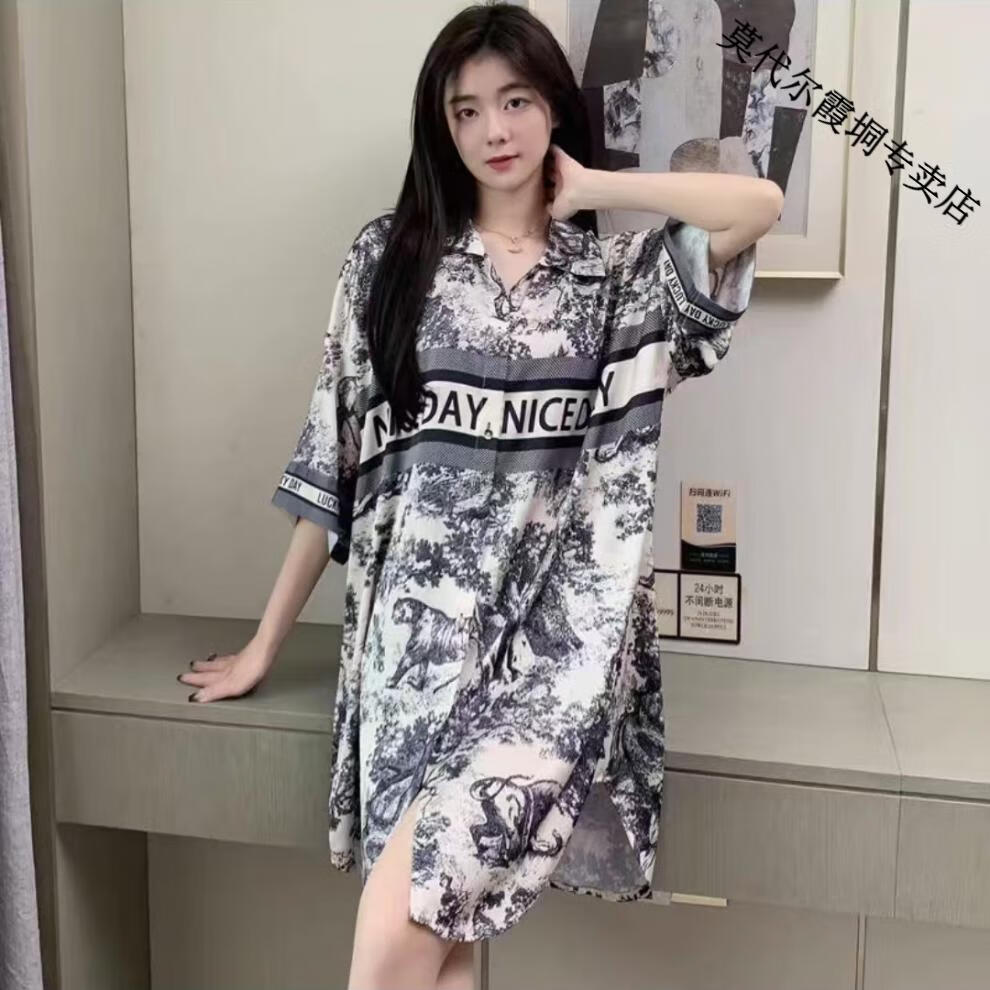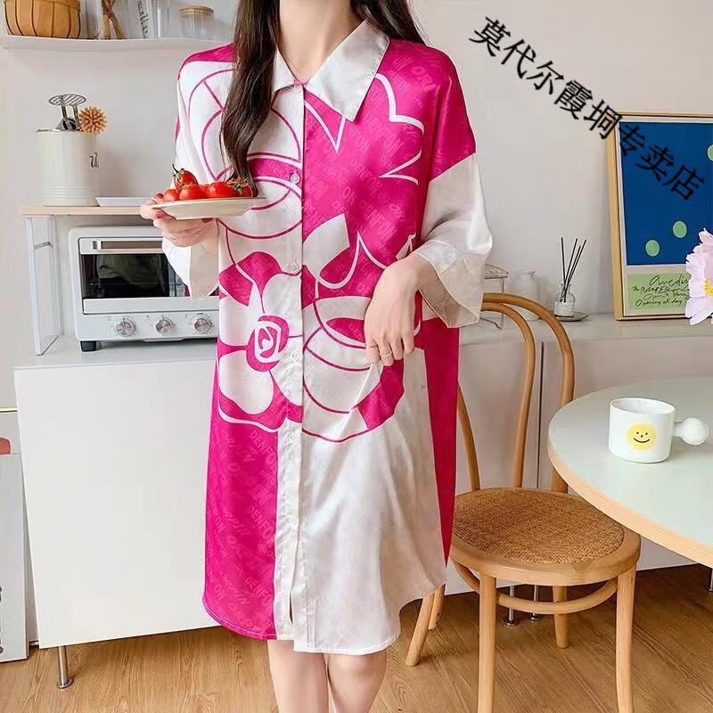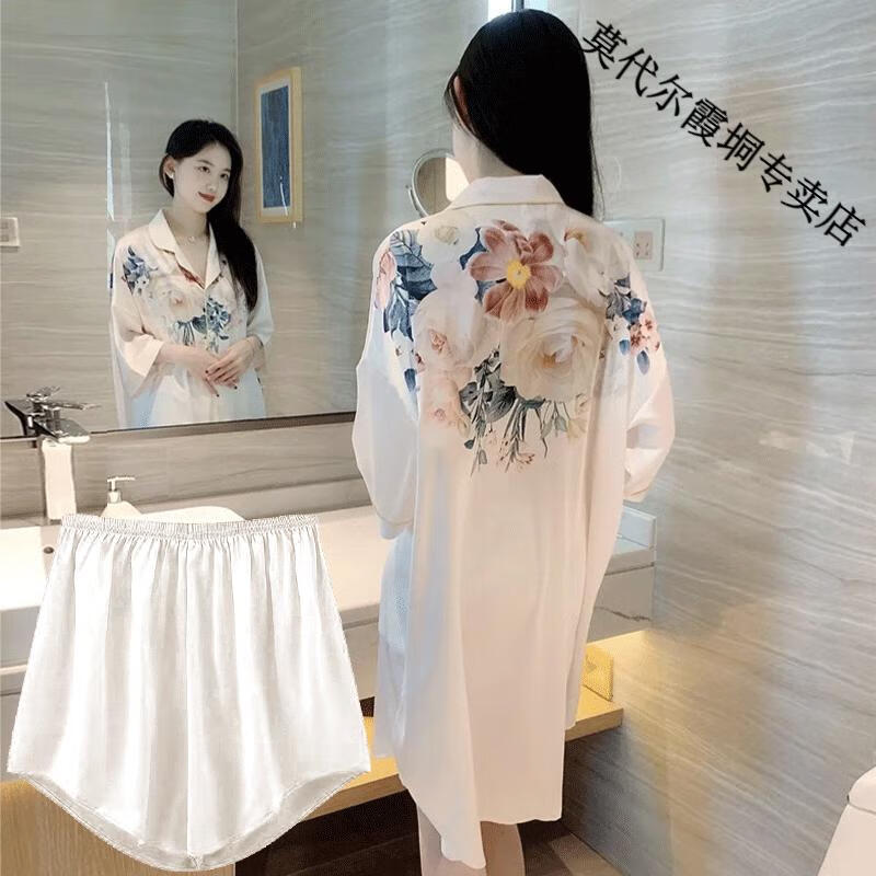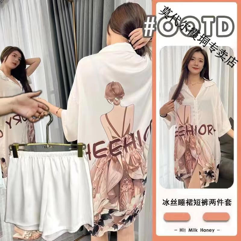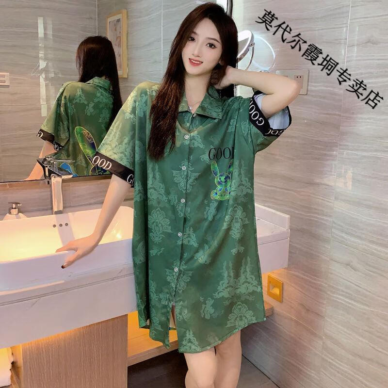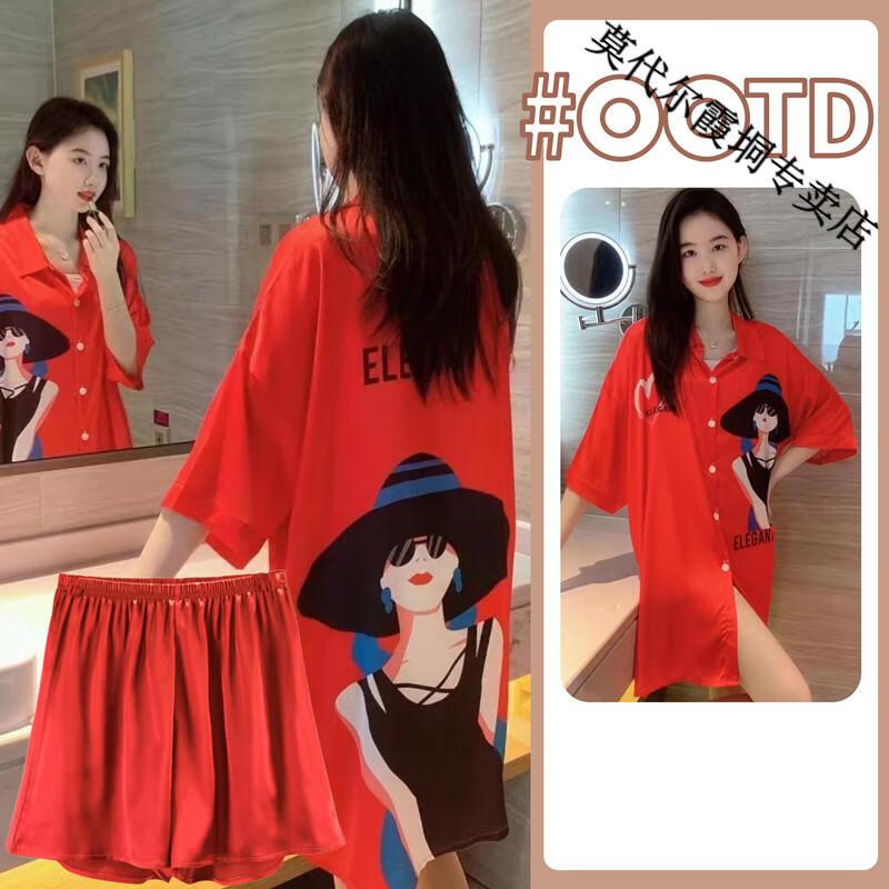 Pyjama modal sexy et pratique pour les rapports sexuels chemise de nuit pour femme été soie glacée 2025 nouvelle jupe cardigan ample à manches courtes jupe style petit ami 719 chat orange XL 115-130Jin Jin est égal à 0,5 kg
