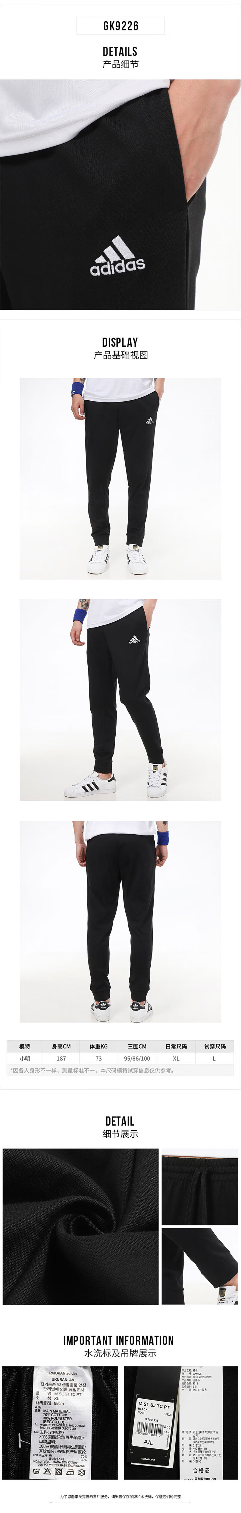 Adidas (adidas) traje deportivo para hombre 25 verano nuevo casual simple transpirable etiqueta pequeña camiseta de manga corta pantalones cerrados conjunto de dos piezas IC9282 + GK9226 M/175