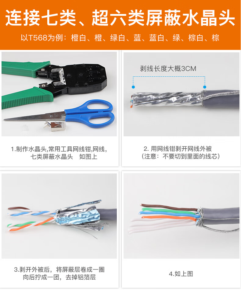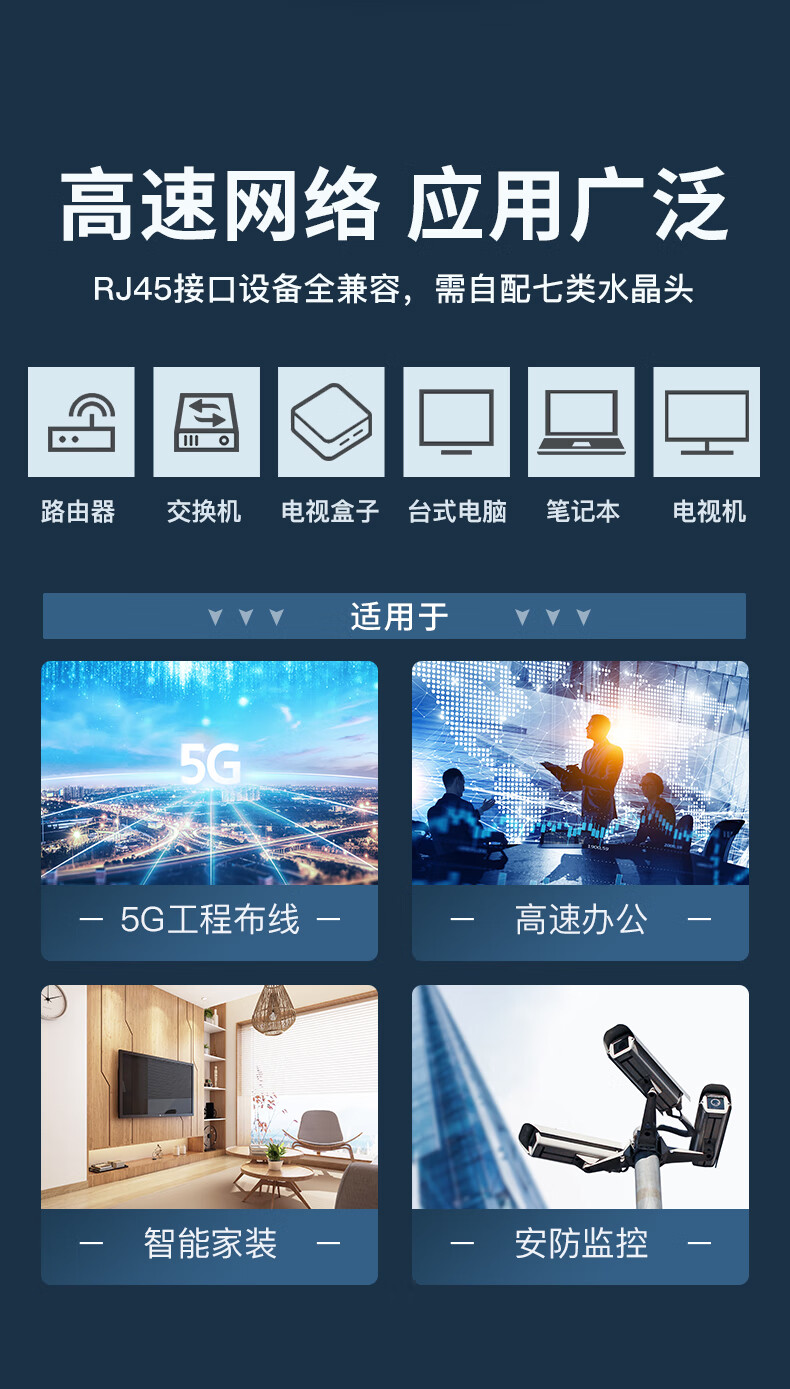 秋叶原(CHOSEAL)超六类网线万兆CAT6A高速超6类双屏蔽纯铜网络线宽带线工程 超六类万兆【双屏蔽款】-灰色-QS6169A【适用 30m