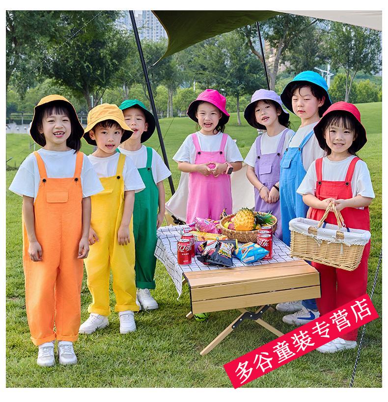G.duck男女儿童糖果彩色背带长裤套装多巴胺合唱啦啦队舞蹈演出班服童装 2321背带裤黄色 150 cm