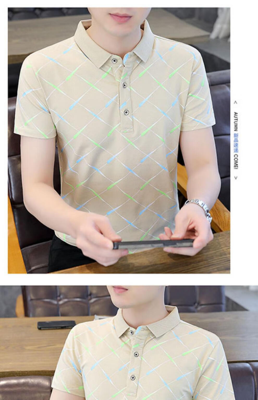 皮尔卡丹(pierre cardin)2025春秋新款POLO.领短袖男ins修身翻领半袖T恤男士体恤上衣服 F9226卡其 2XL