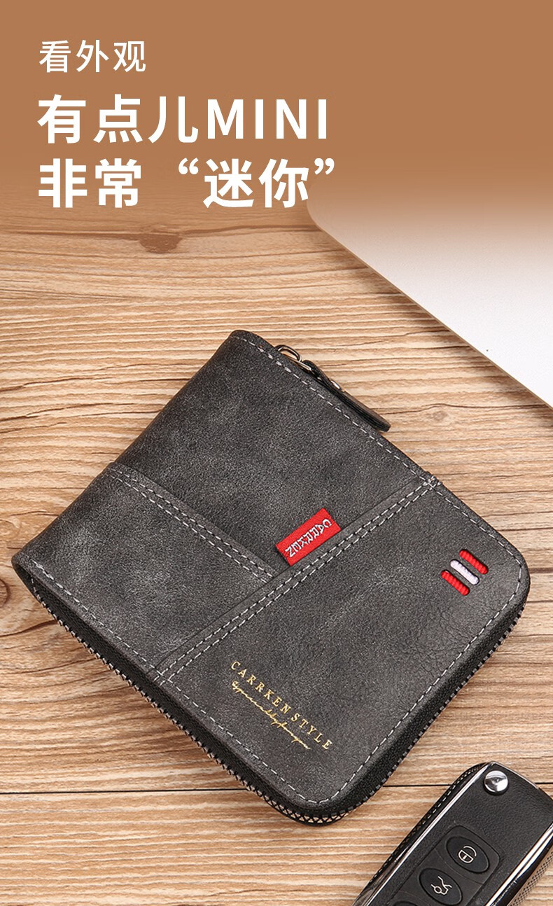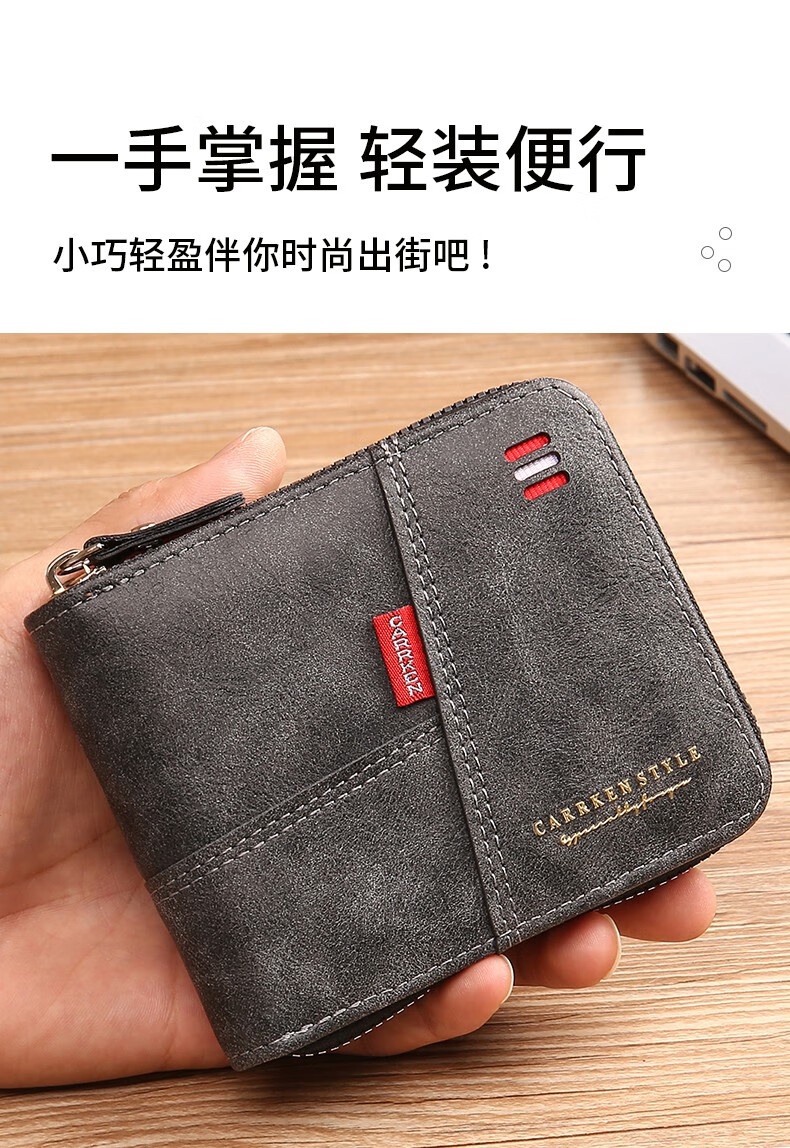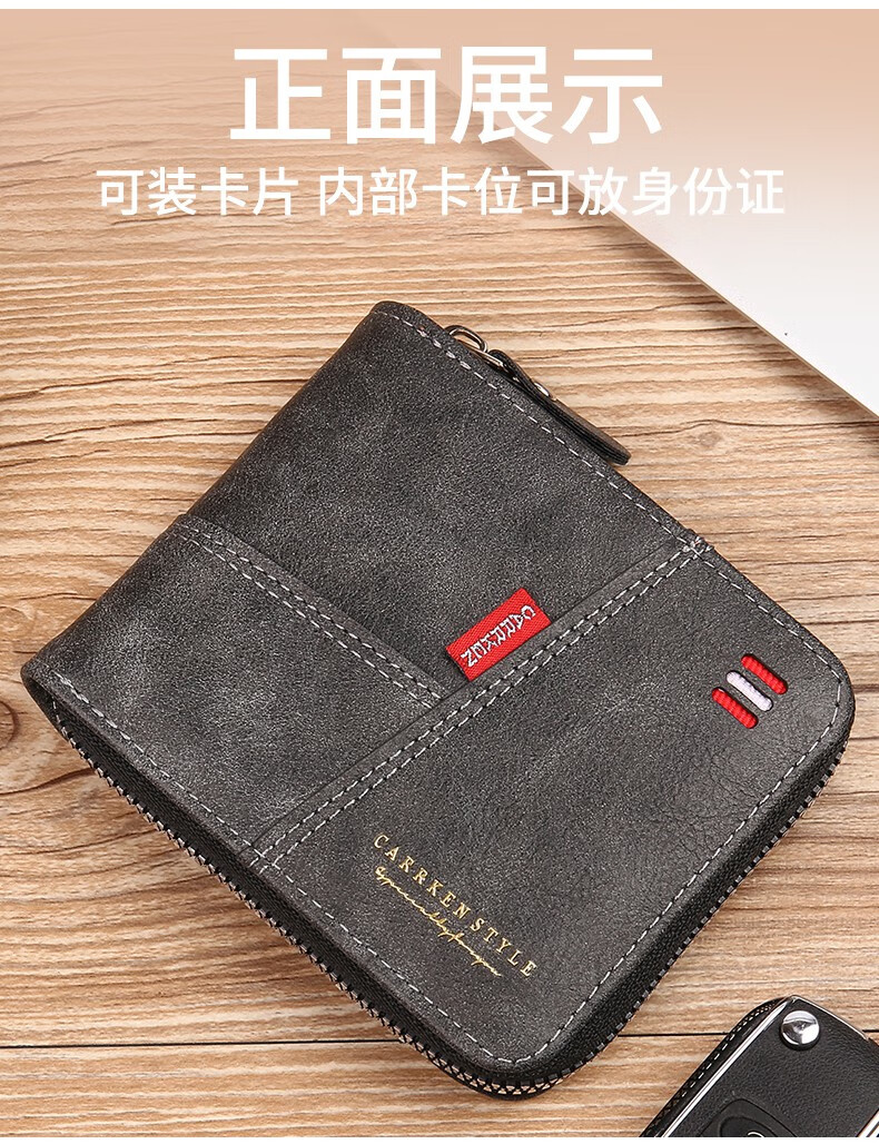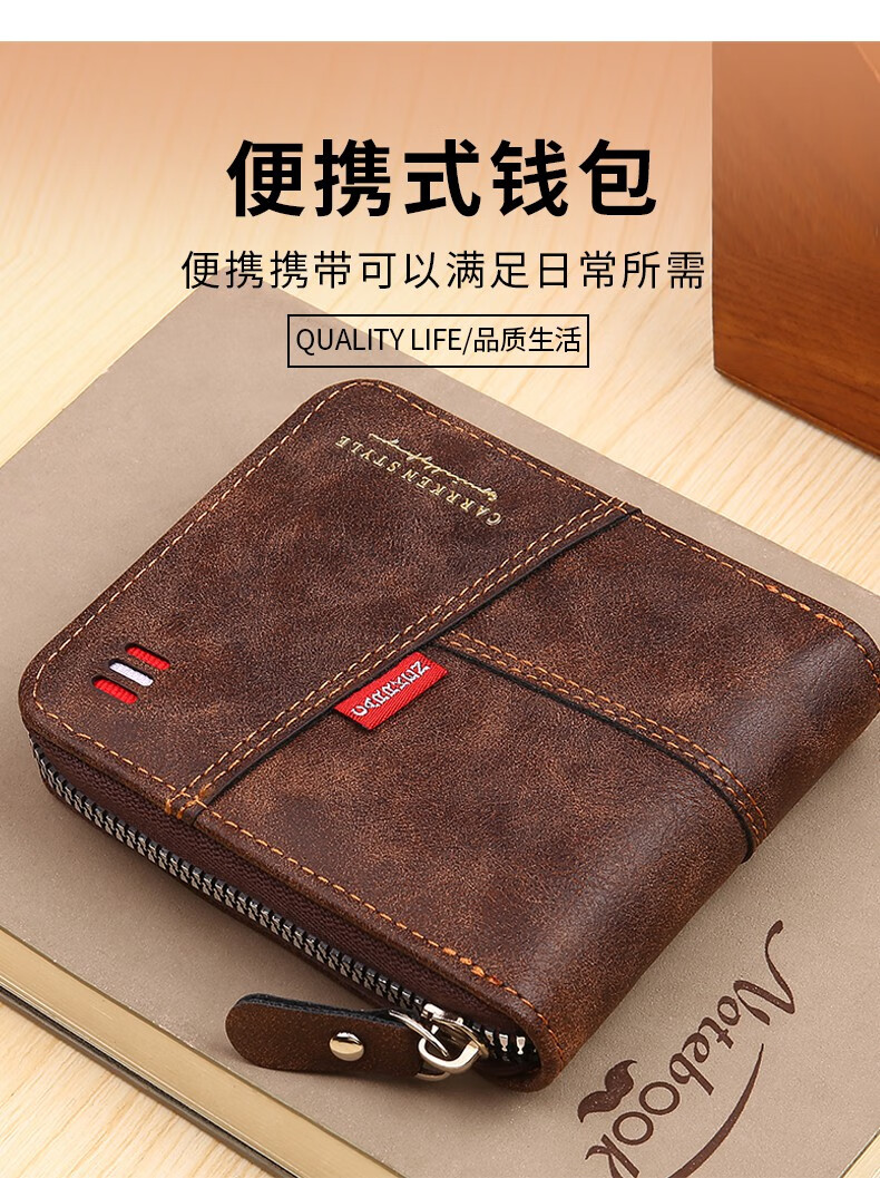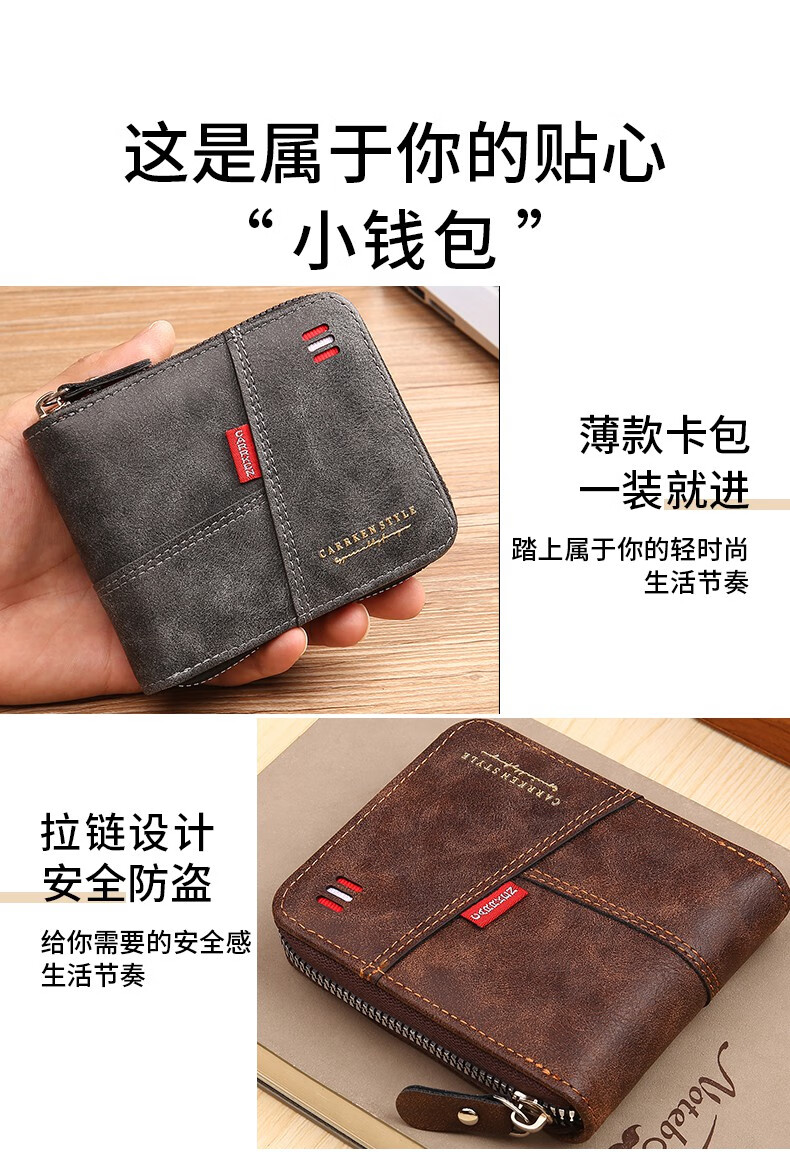酷奇袋鼠(KUQIDAISHU)钱包男士短款个性拉链钱夹大容量卡包一体薄款零钱袋收纳皮夹 深啡