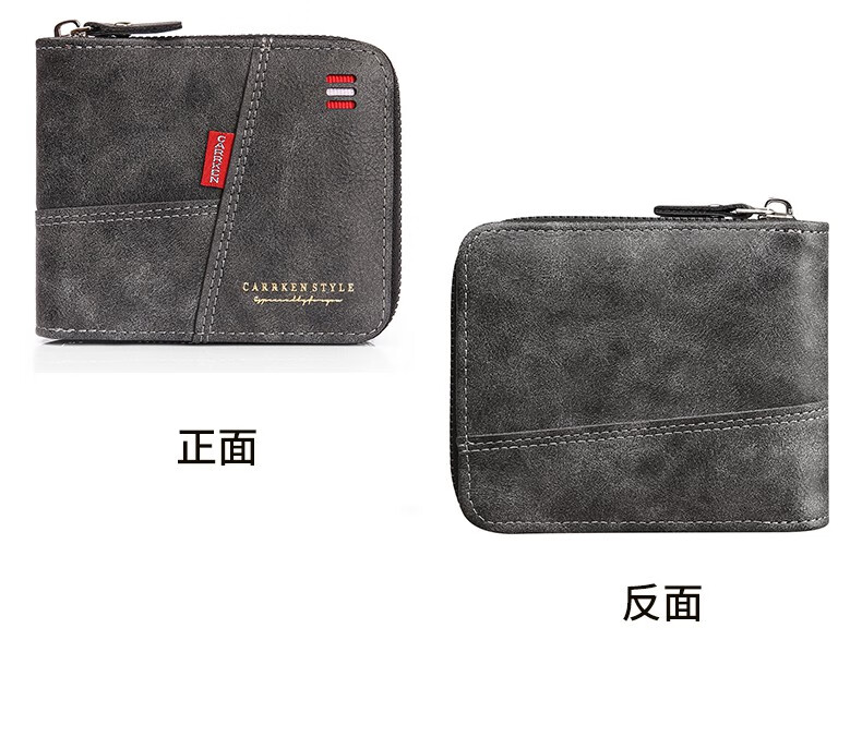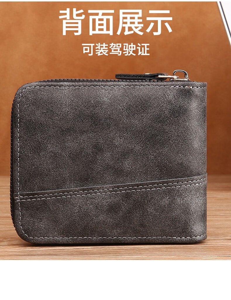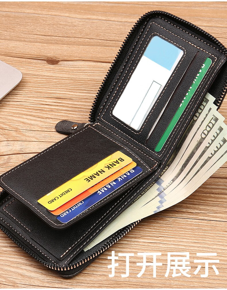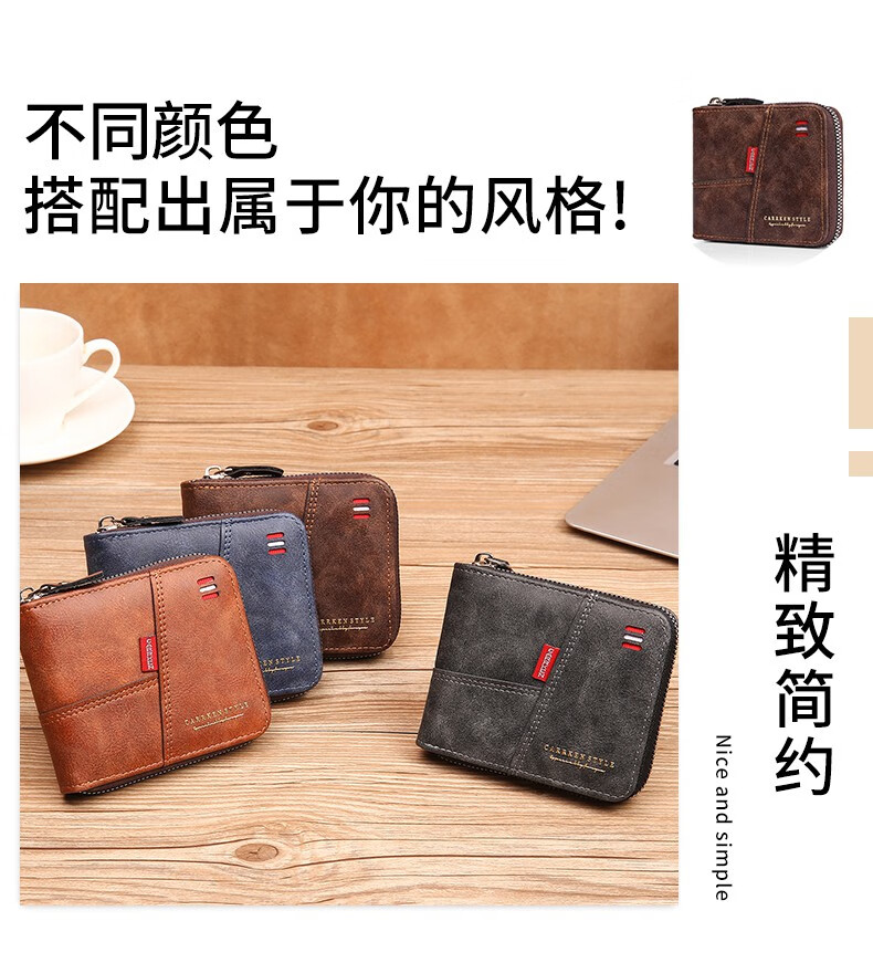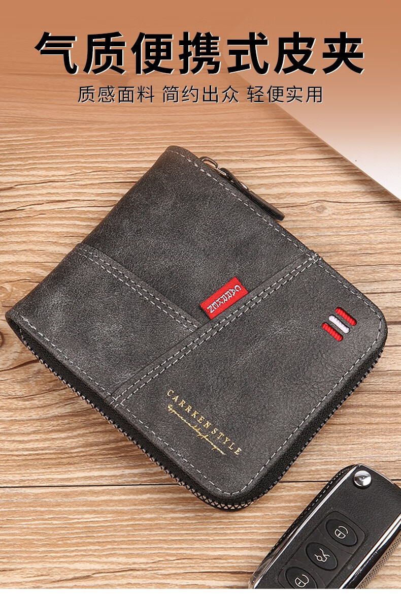 酷奇袋鼠(KUQIDAISHU)钱包男士短款个性拉链钱夹大容量卡包一体薄款零钱袋收纳皮夹 深啡