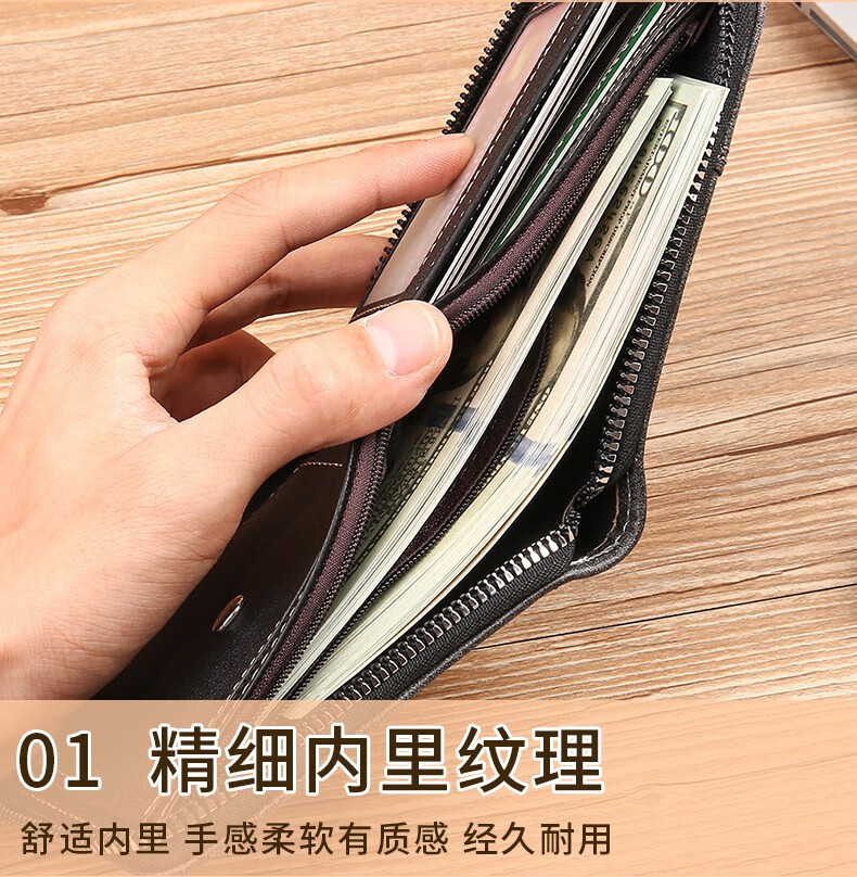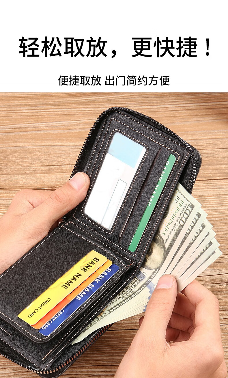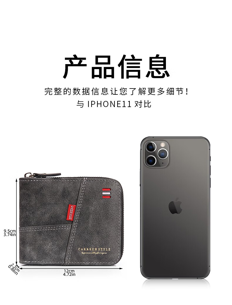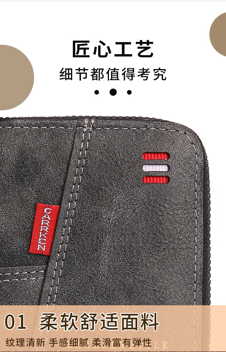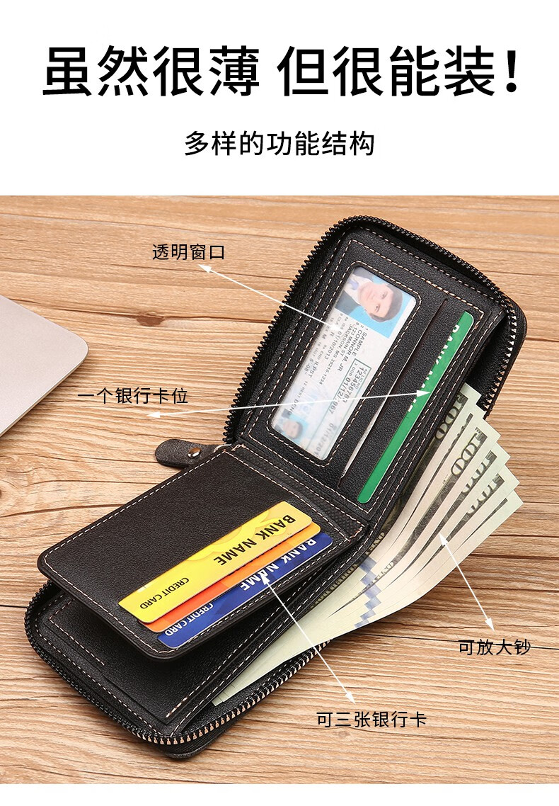 酷奇袋鼠(KUQIDAISHU)钱包男士短款个性拉链钱夹大容量卡包一体薄款零钱袋收纳皮夹 深啡