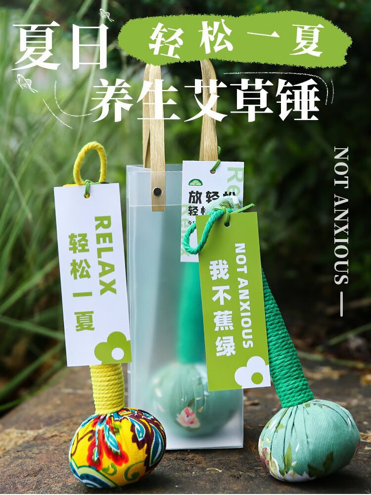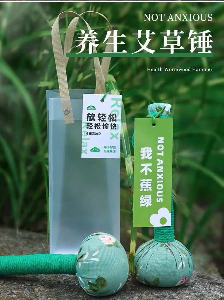 Mugwort hammer souvenirs, health and practical small gifts, company events, employee benefits, opening, customer gifts customization, I am not anxious - health-preserving mugwort hammer (green) + gift bag