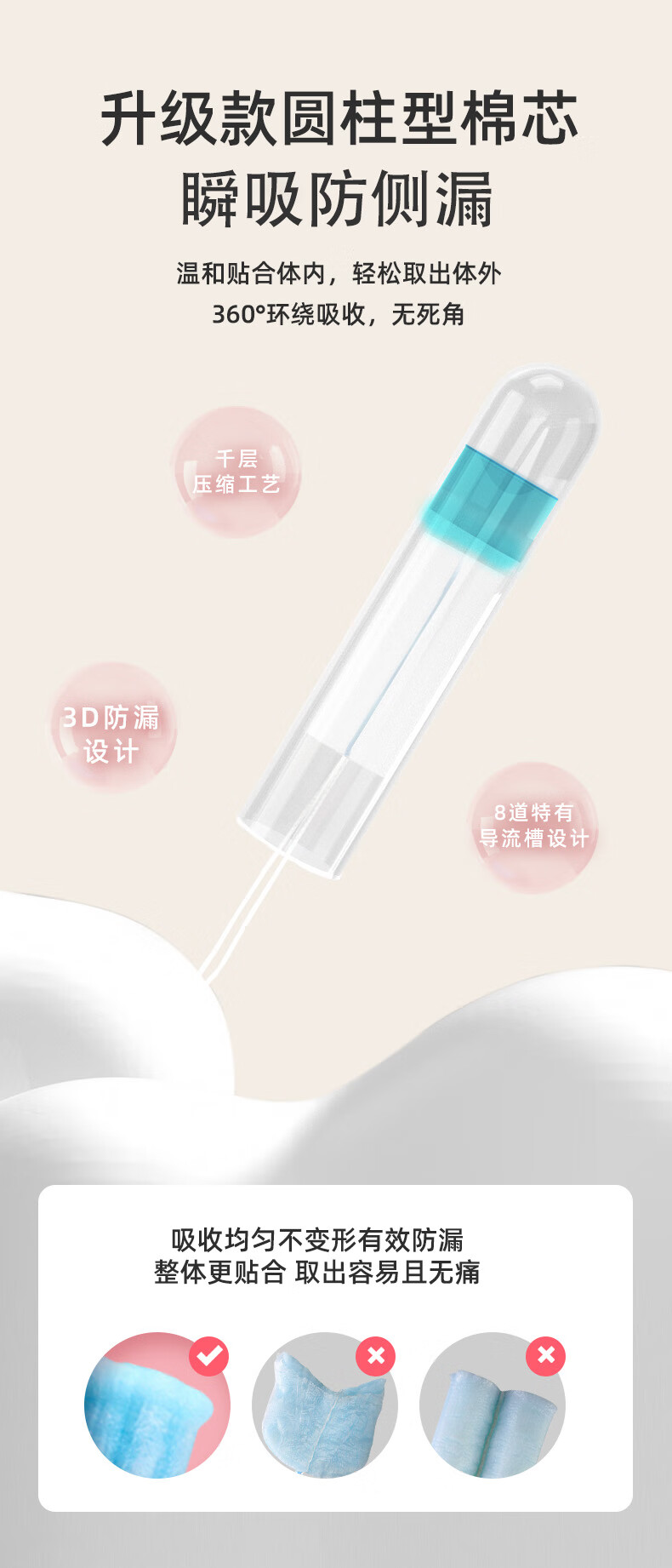 AIMYBEAR长导管式卫生棉条8支装 无感易推游泳可用内置式卫生巾新手推荐 普通款R 8支装