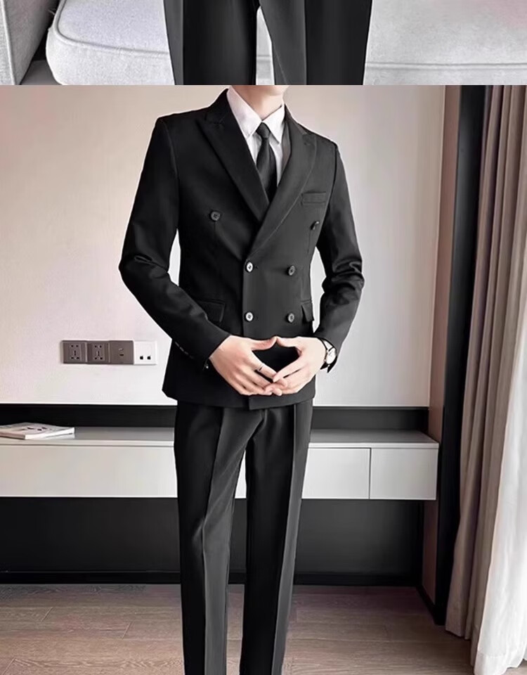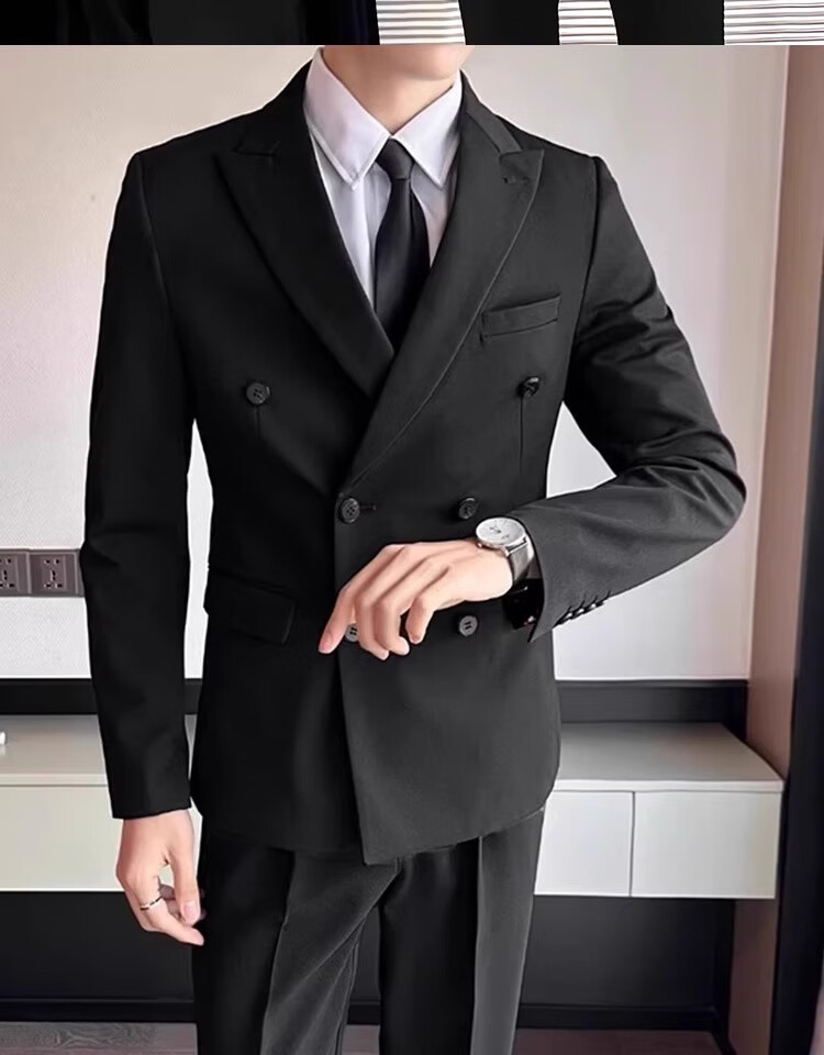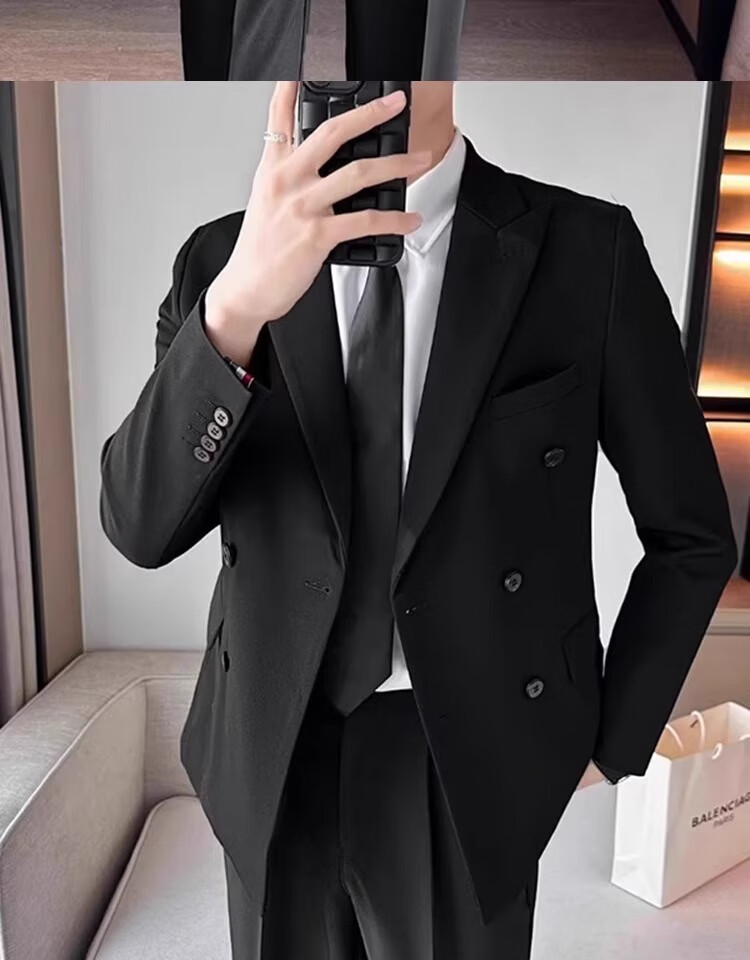 Sound Monkey Suit Men's Interview Professional Student Formal Suit Wedding Dress New Groomsman Business Casual Jacket Men Black Suit + White Shirt + Black Pants + Tie L