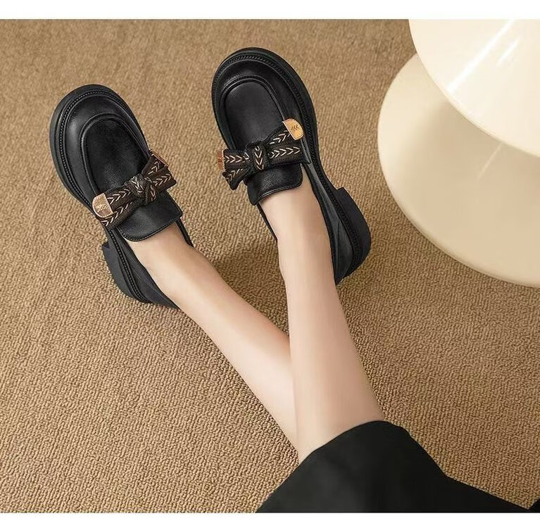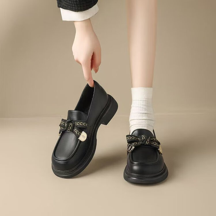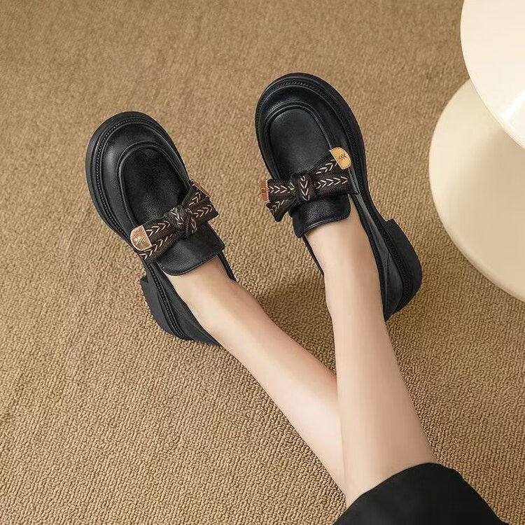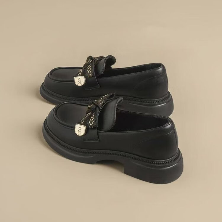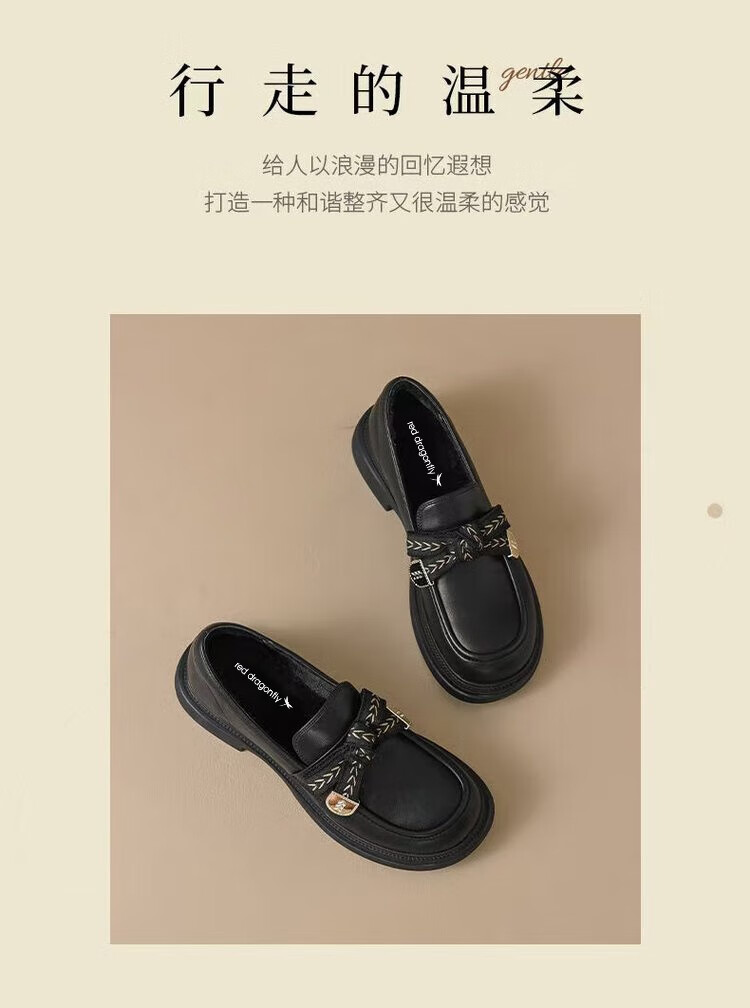 Red Dragonfly Mocassins Femme 2025 Nouveau Printemps et Automne Britannique Petites Chaussures en Cuir Véritable Semelle Souple Semelle Épaisse Chaussures Simples Noir 37