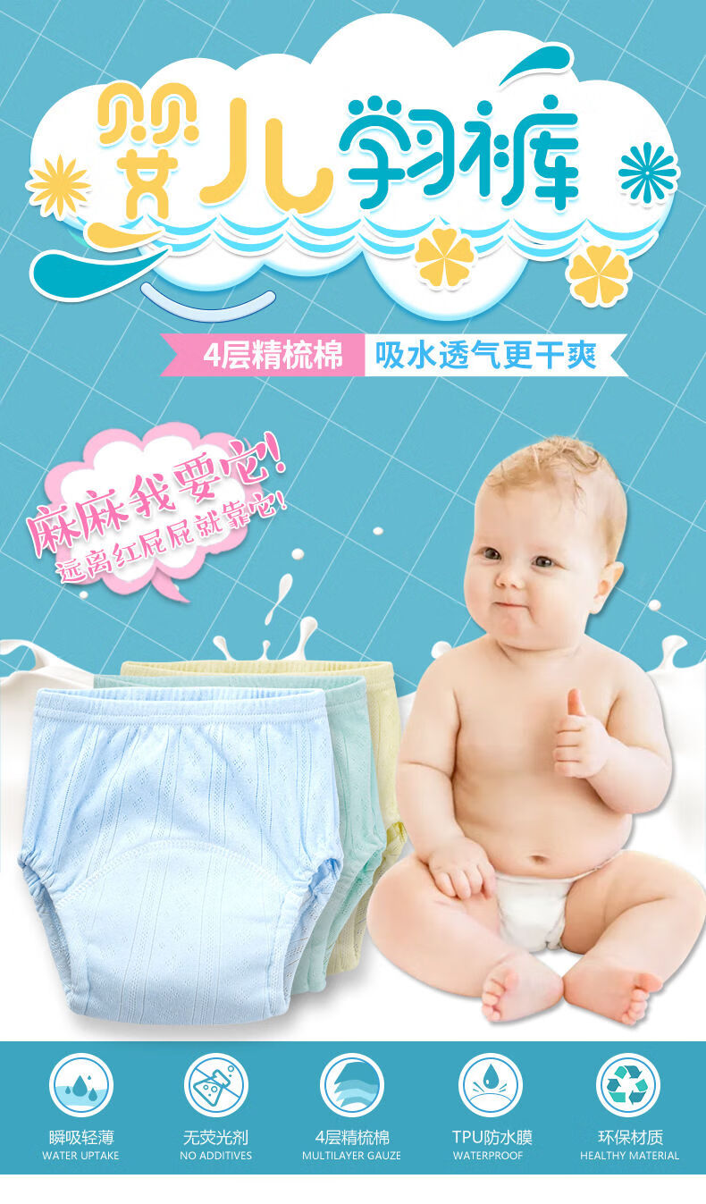 Детские подгузники Bara Pig, моющиеся карманы для детских подгузников, дышащие герметичные подгузники для унитаза, водонепроницаемые подгузники, летние тренировочные штаны, 52 шт., белый + розовый + желтый M (рекомендуемый вес 16–24 Jin Jin равен 0,5 кг для ребенка)