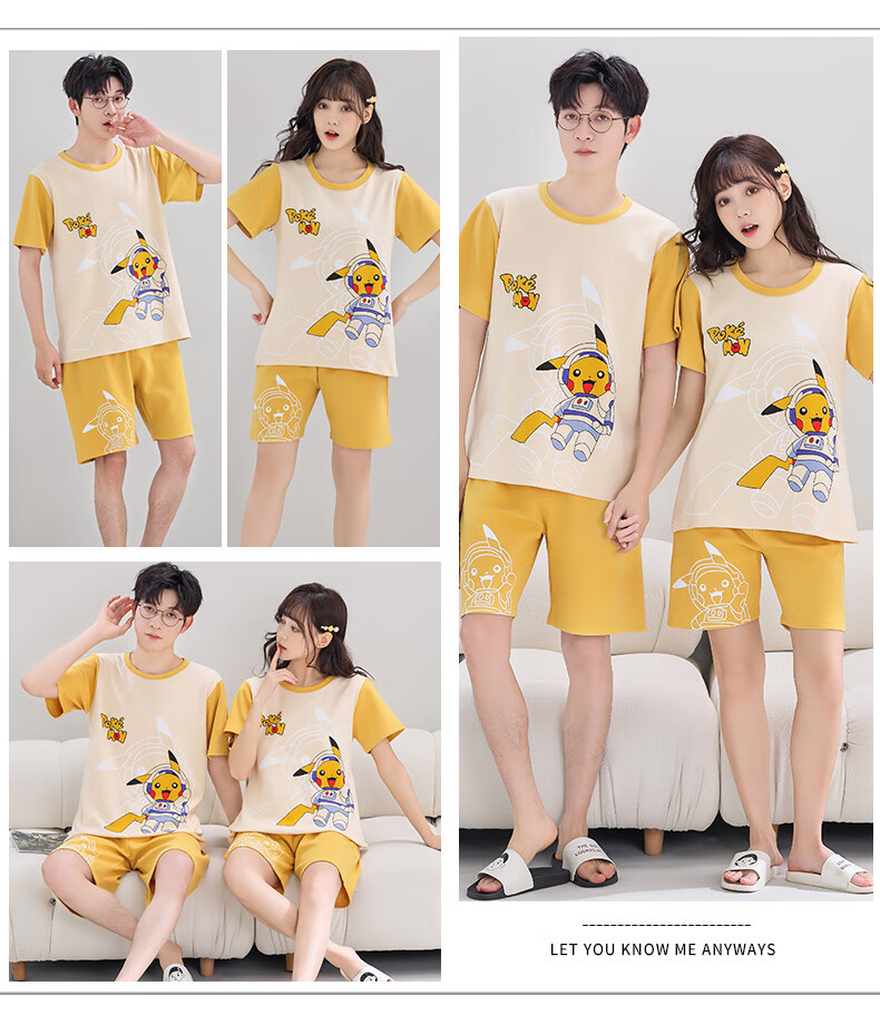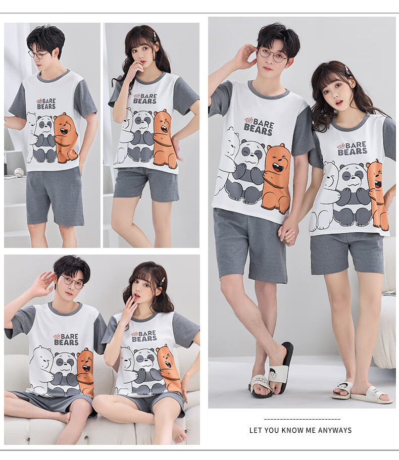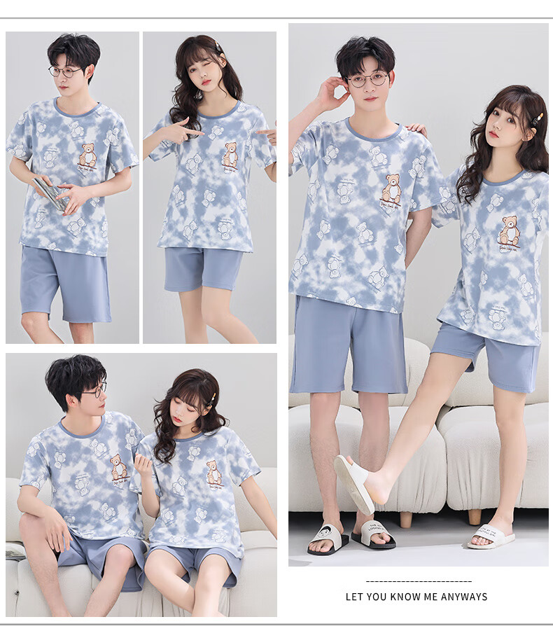 猫人情侣夏季新疆棉短袖睡衣女可爱小白男大码宽松家居服 Q1396浅绿小白短袖 M 女建议80-100斤