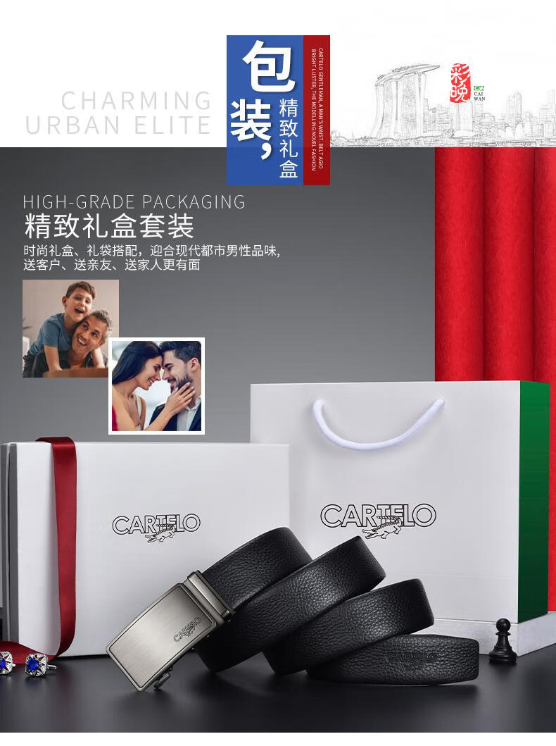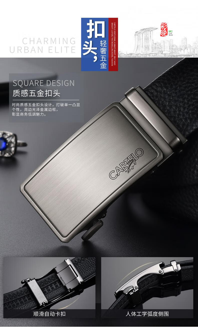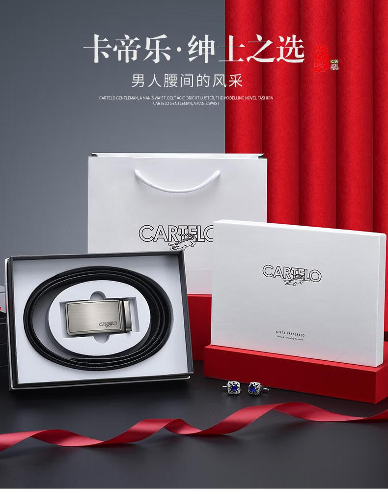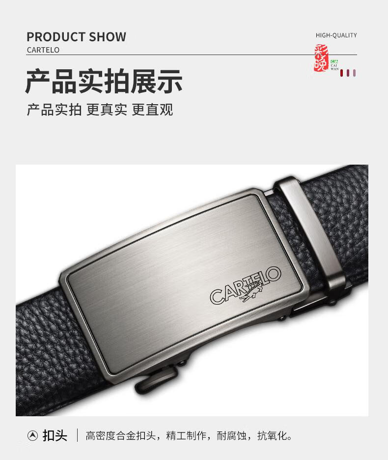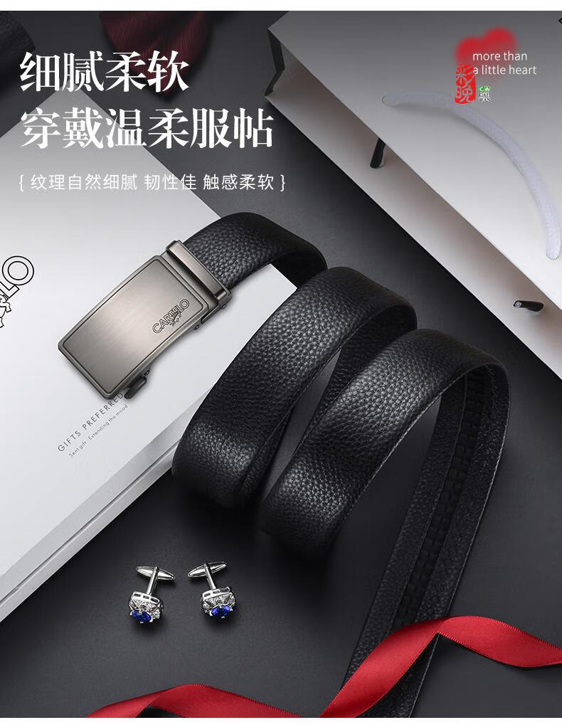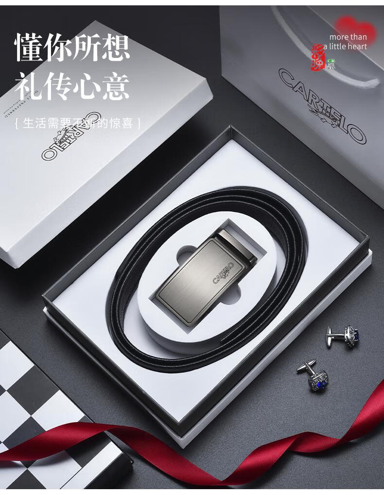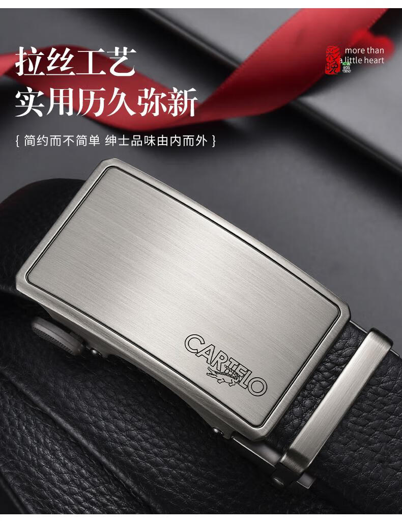 卡帝乐鳄鱼男士皮带真皮2025新款自动扣腰带商务纯头层牛皮软裤带 TC756拉丝枪 110cm