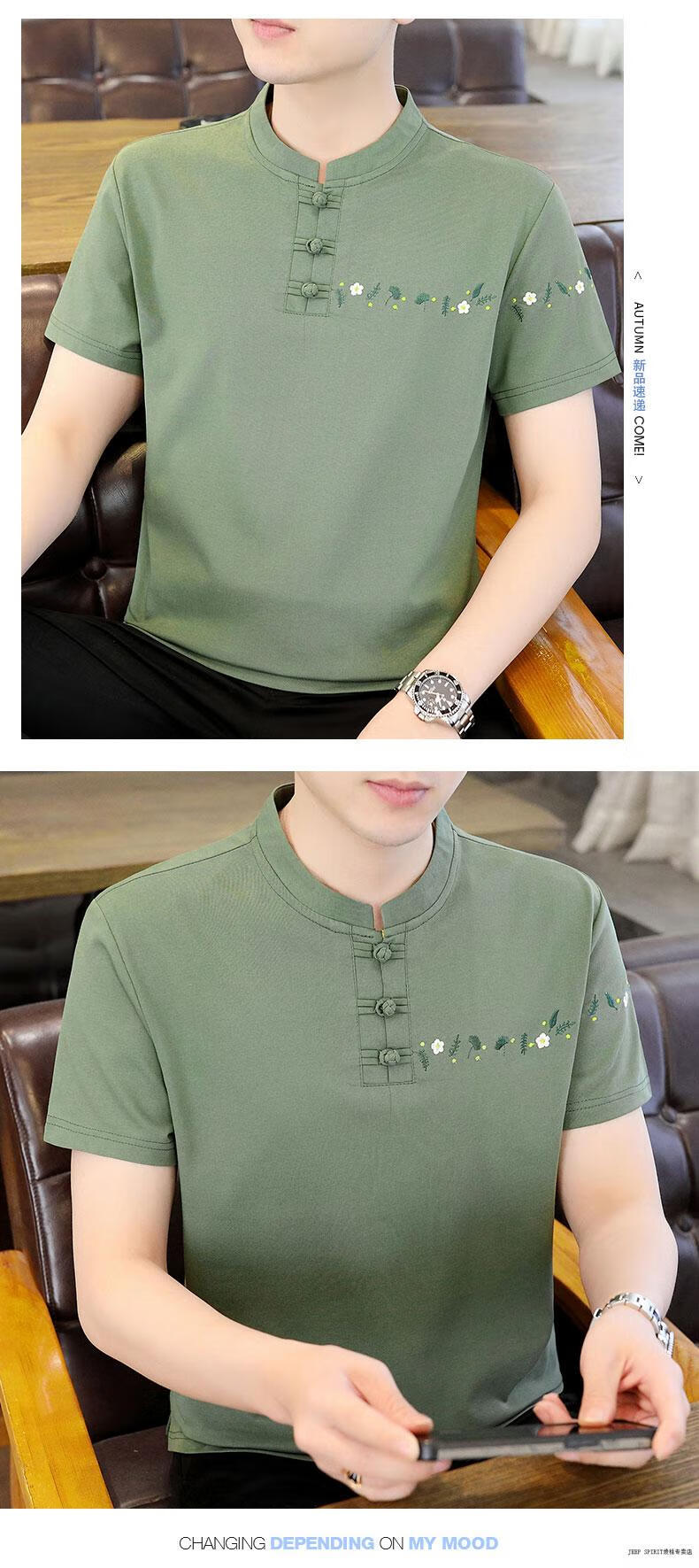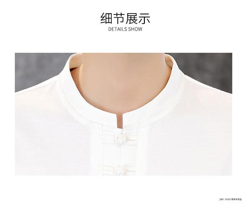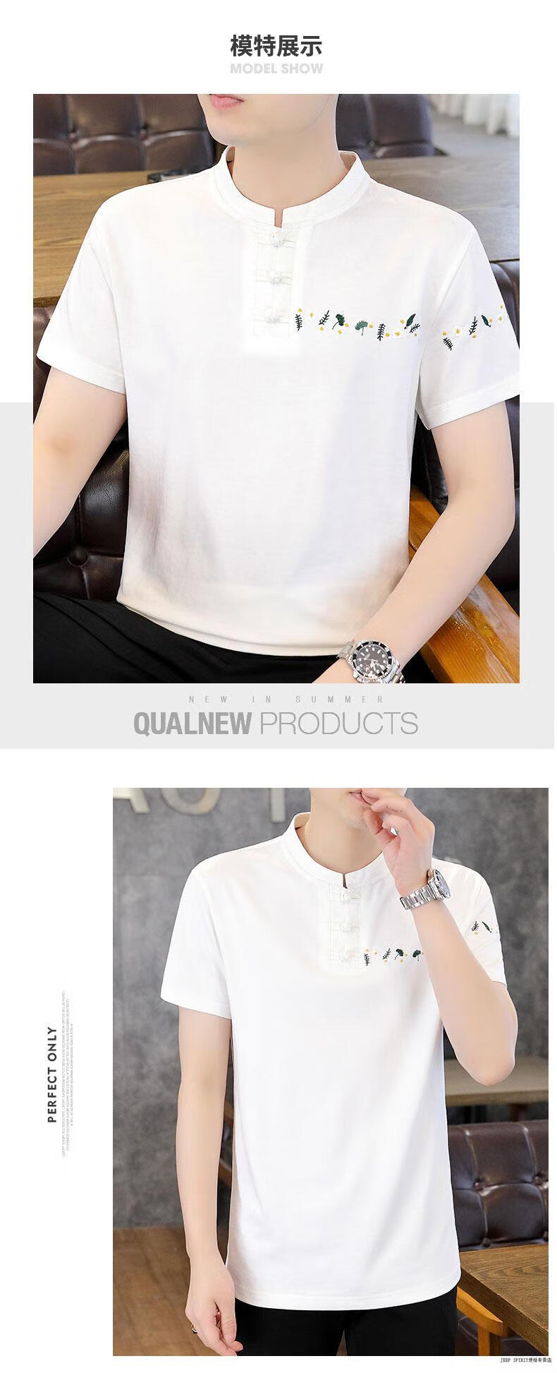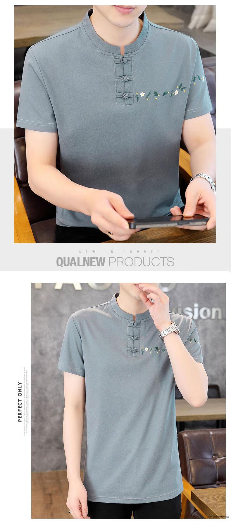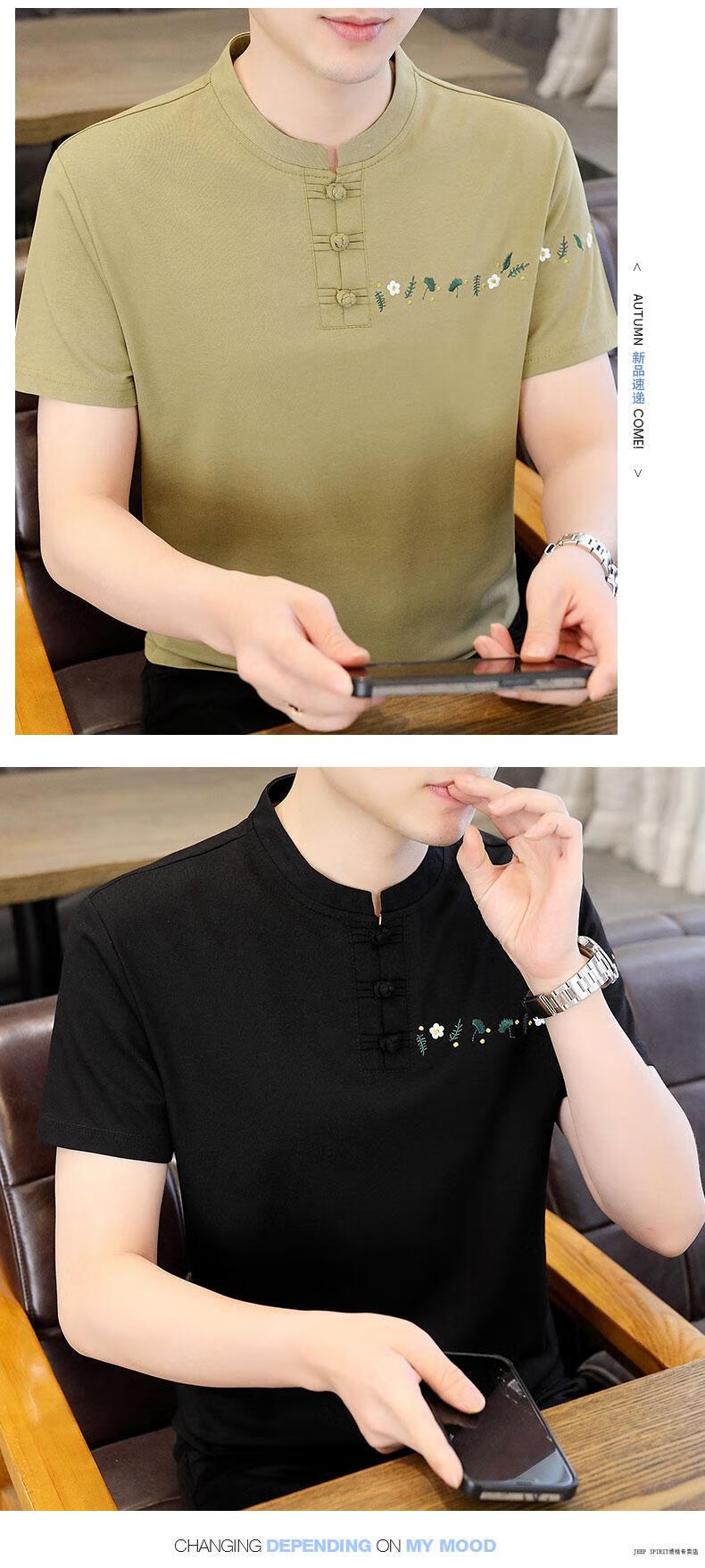 JEEP SPIRIT薄款立领短袖t恤男士2025夏季新款中式国潮半袖棉麻T恤刺绣上衣T 咖色 XL 125-135斤左右