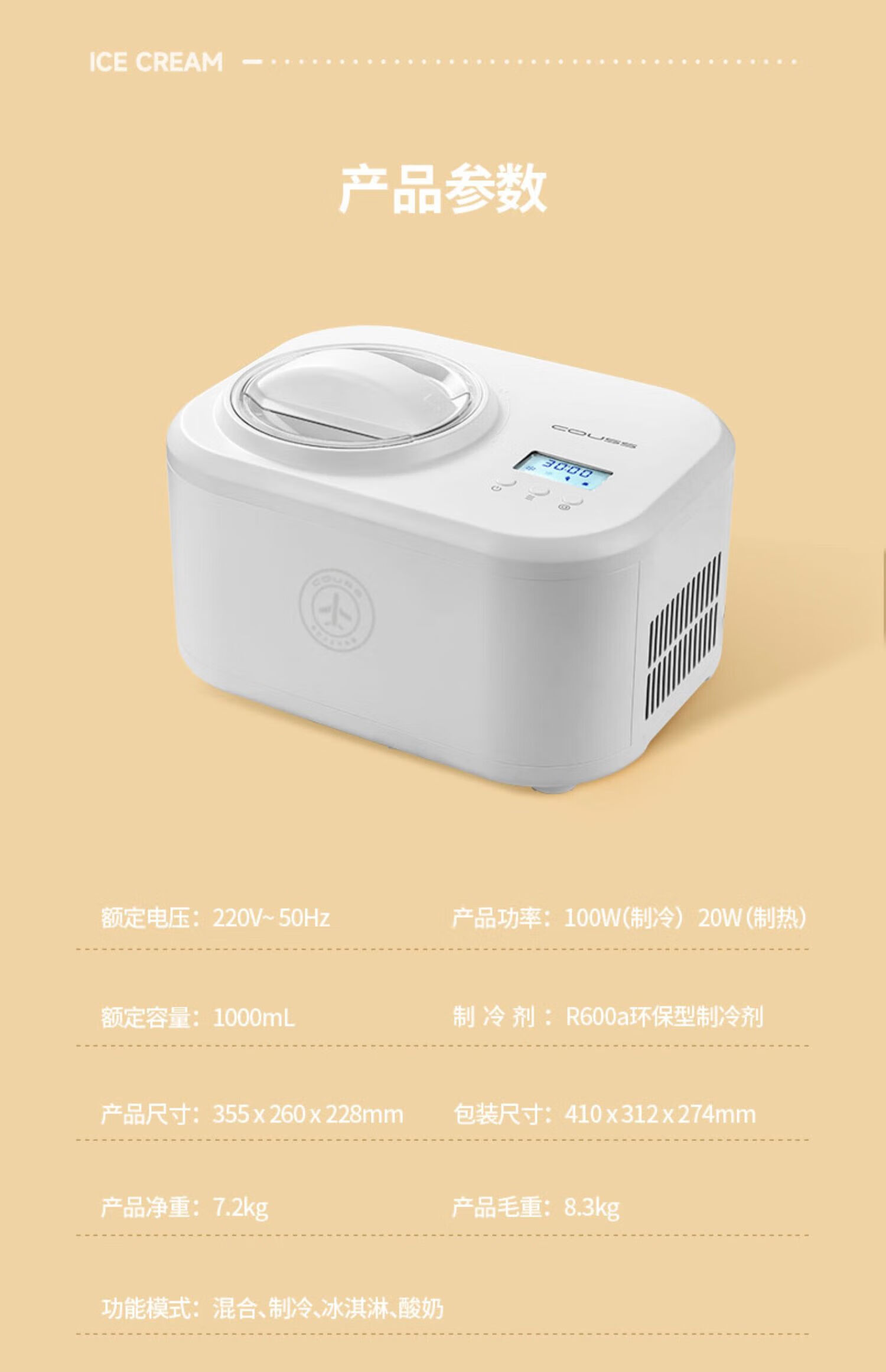 Cass CI510 ice cream machine 1L large capacity yogurt household ice cream machine one-button fully automatic white white