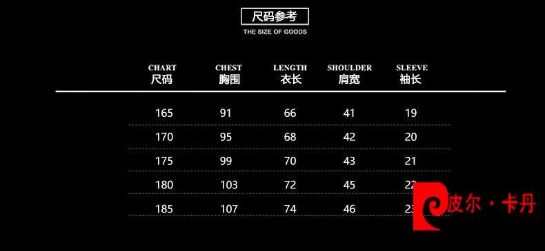 China (cm) 165 / 88-90 170 / 96-98 175 / 108-110 180 / 118-122 185 / 126-130