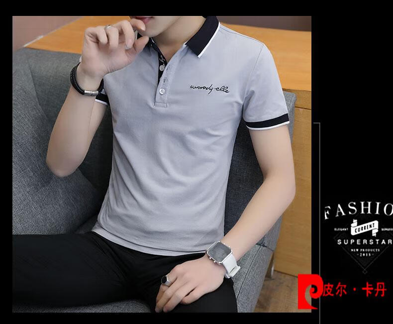 皮尔卡丹(pierre cardin)polo.衫短袖男夏季潮牌高端翻领T恤半袖潮流修身商务休闲上衣体恤 7029红色 M (约85-105斤可穿)