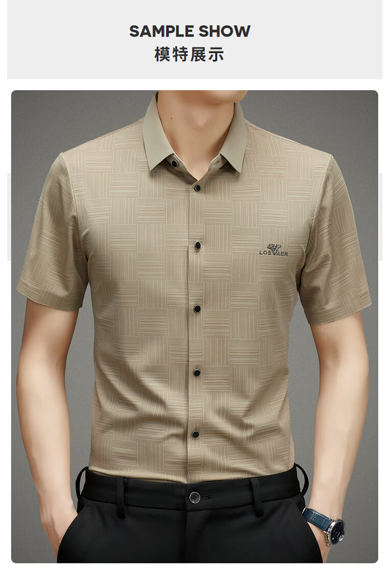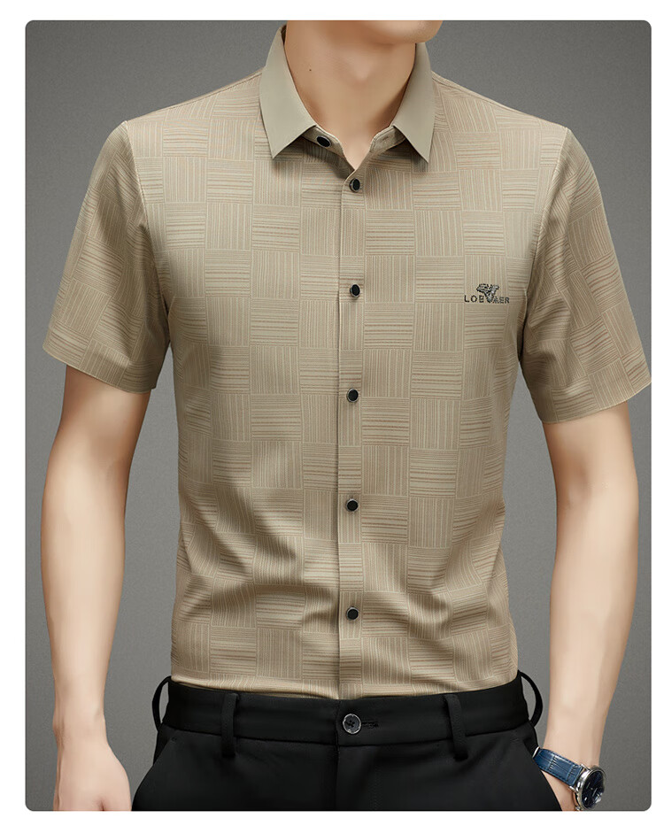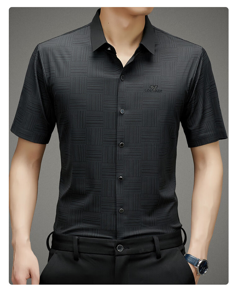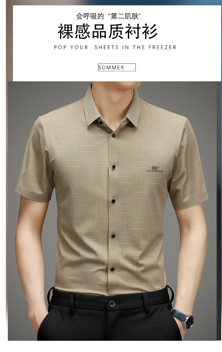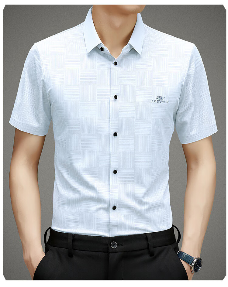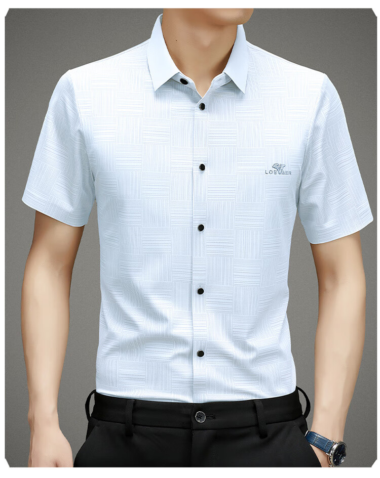 皮尔卡丹高档桑蚕丝免烫短袖衬衫男士2025夏季薄款商务无痕休闲真丝衬衣男 PR  格子白色  (短衣袖) XL 175 建议130-150斤
