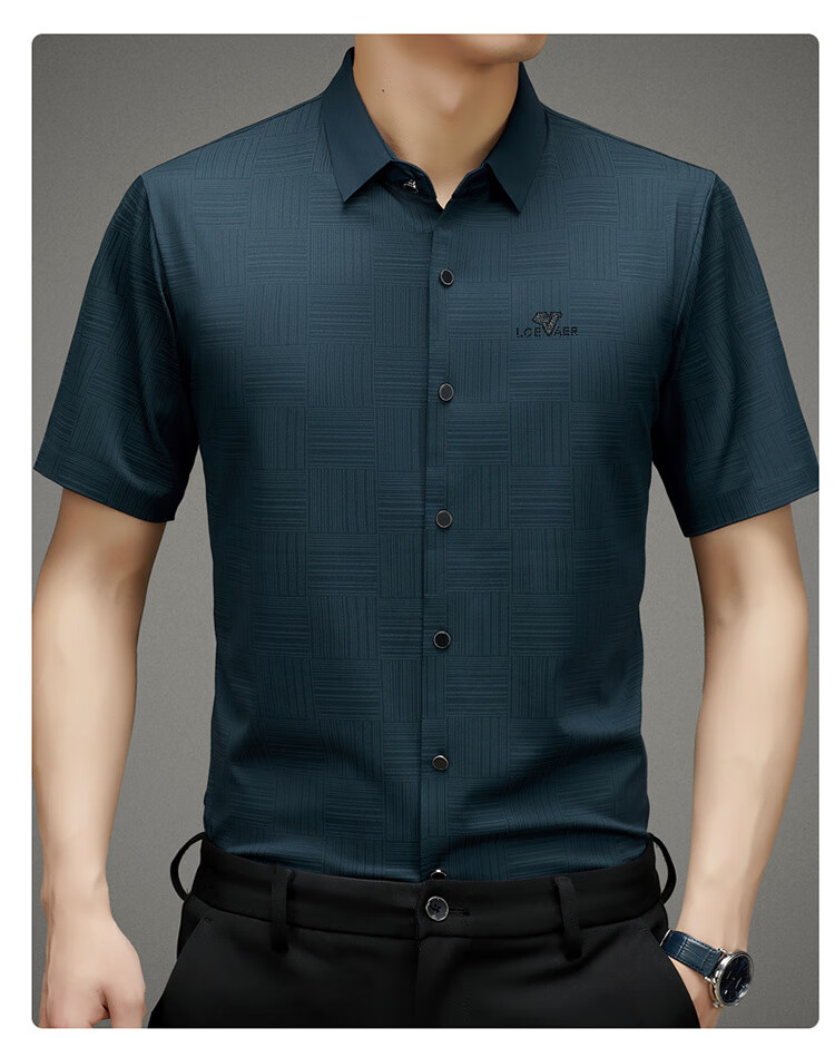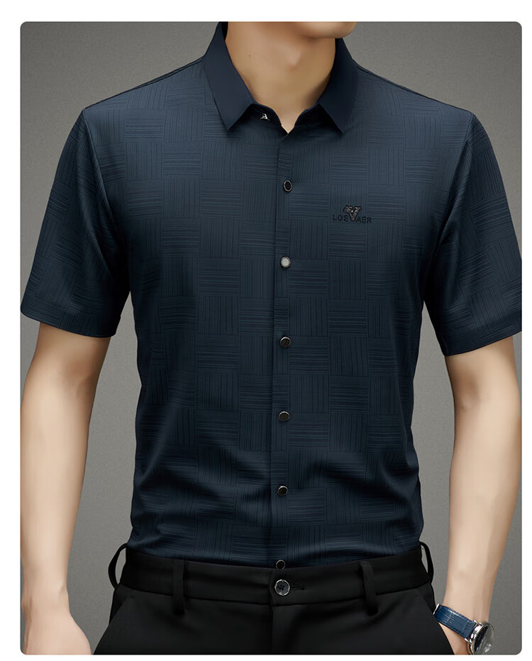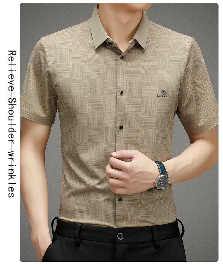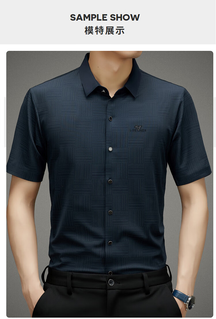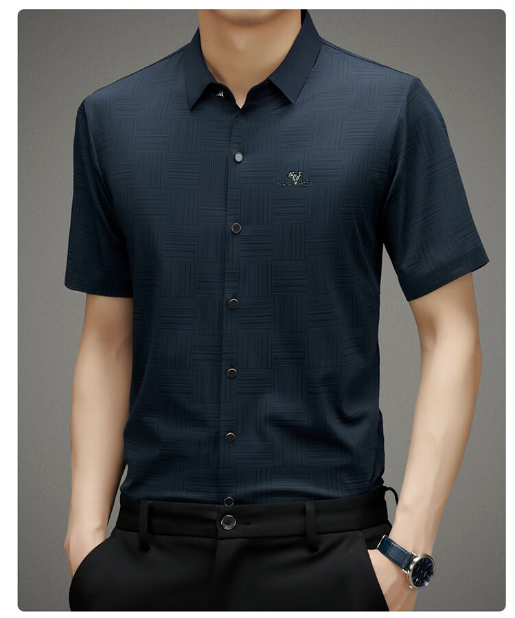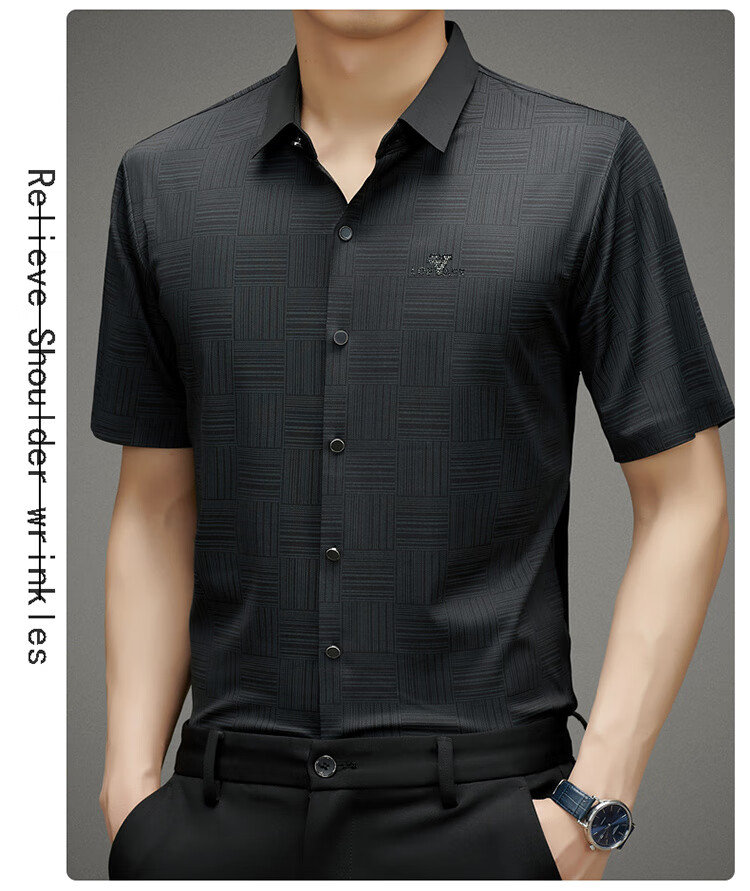 皮尔卡丹高档桑蚕丝免烫短袖衬衫男士2025夏季薄款商务无痕休闲真丝衬衣男 PR  格子白色  (短衣袖) XL 175 建议130-150斤