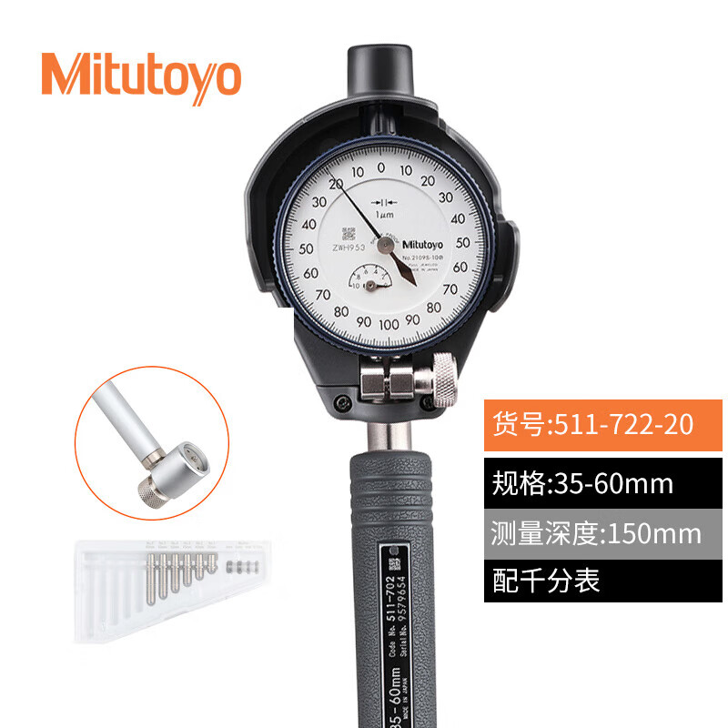 三丰内径量表内孔指示百分表511-711 712测缸规18-35 50-150mm/型号511-723-20/分度
