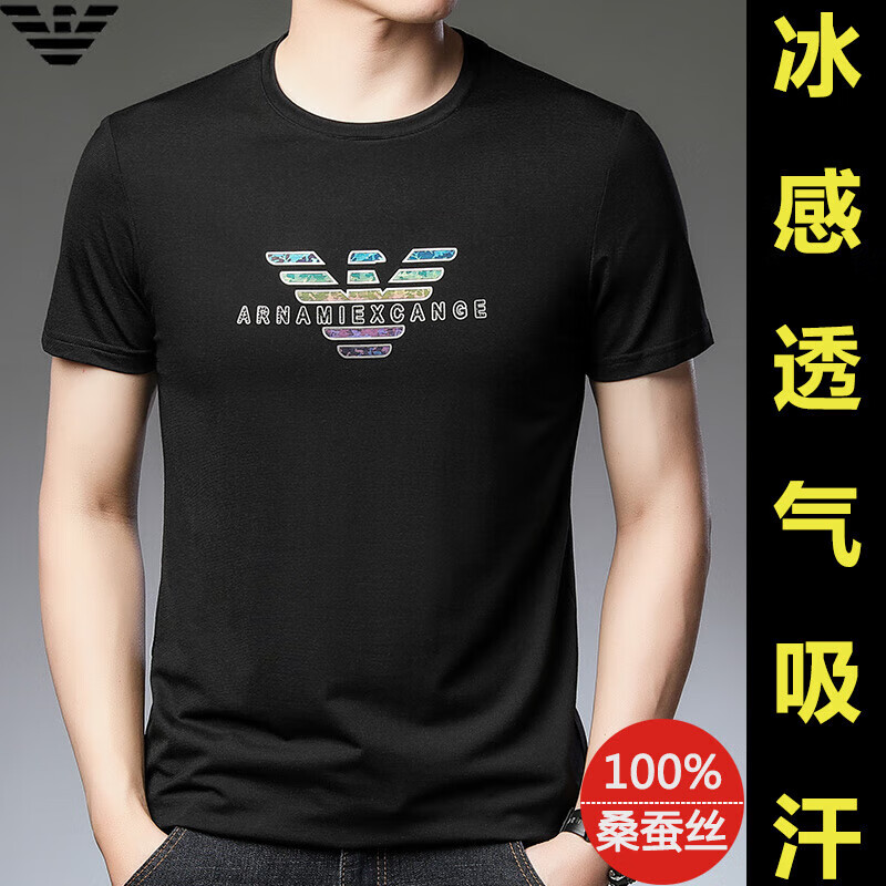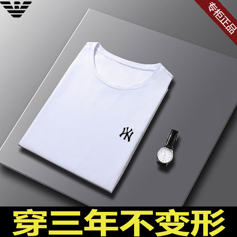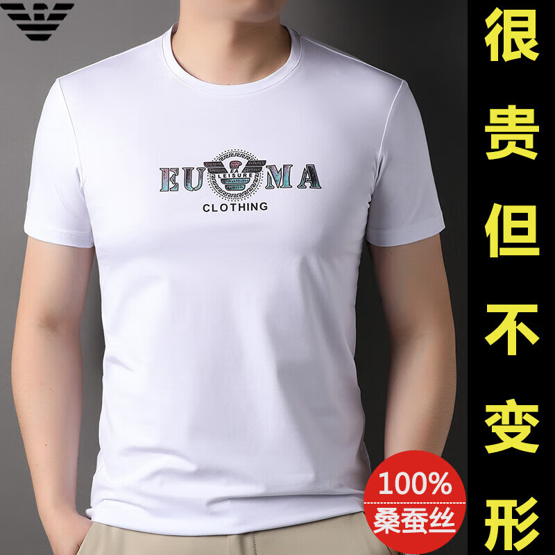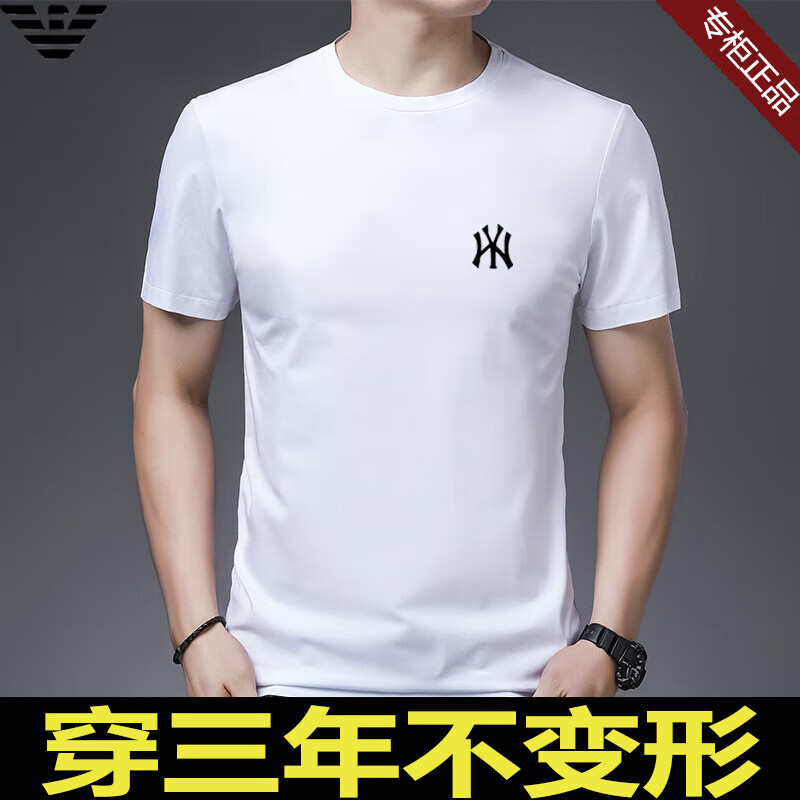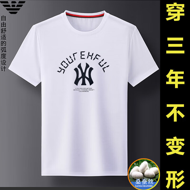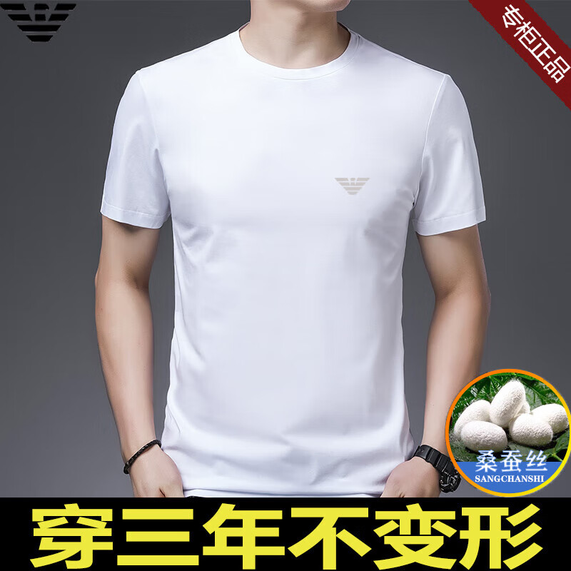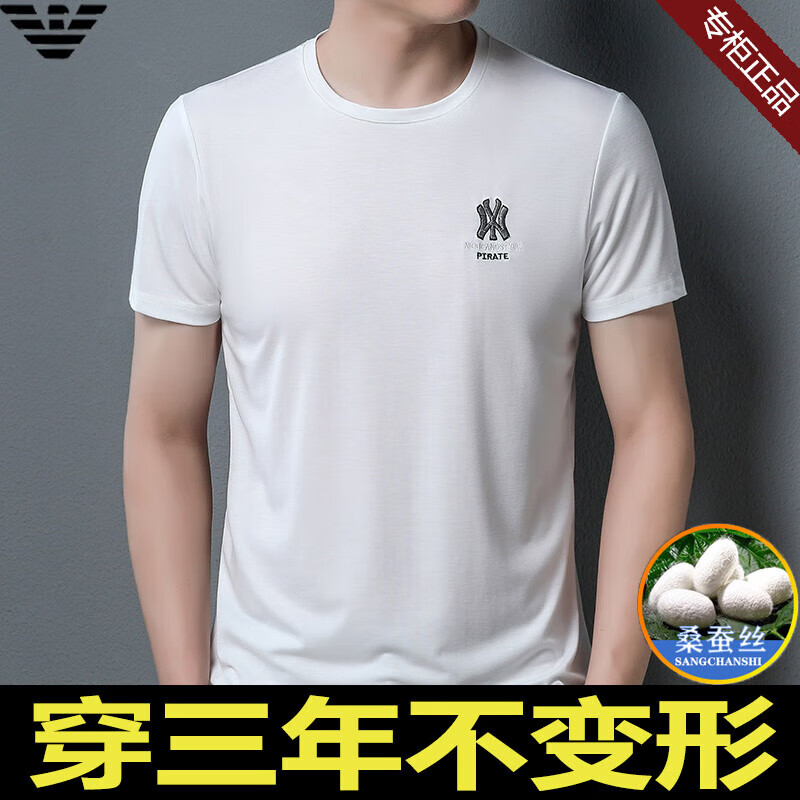 ARMANI EXCHANGE阿玛尼短袖t恤男夏季新款圆领桑蚕丝半袖T潮流体恤 782368白色 桑蚕丝冰感透气刺绣 3XL 【建议170-190斤】
