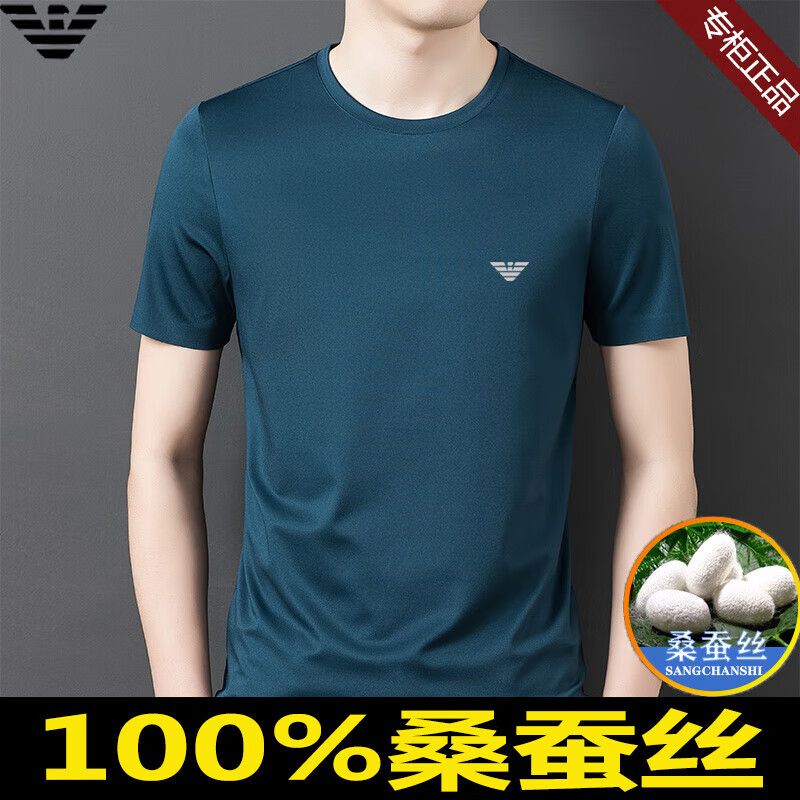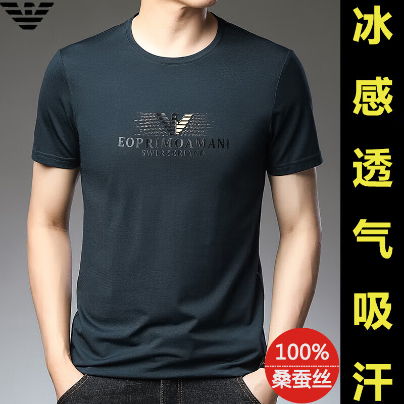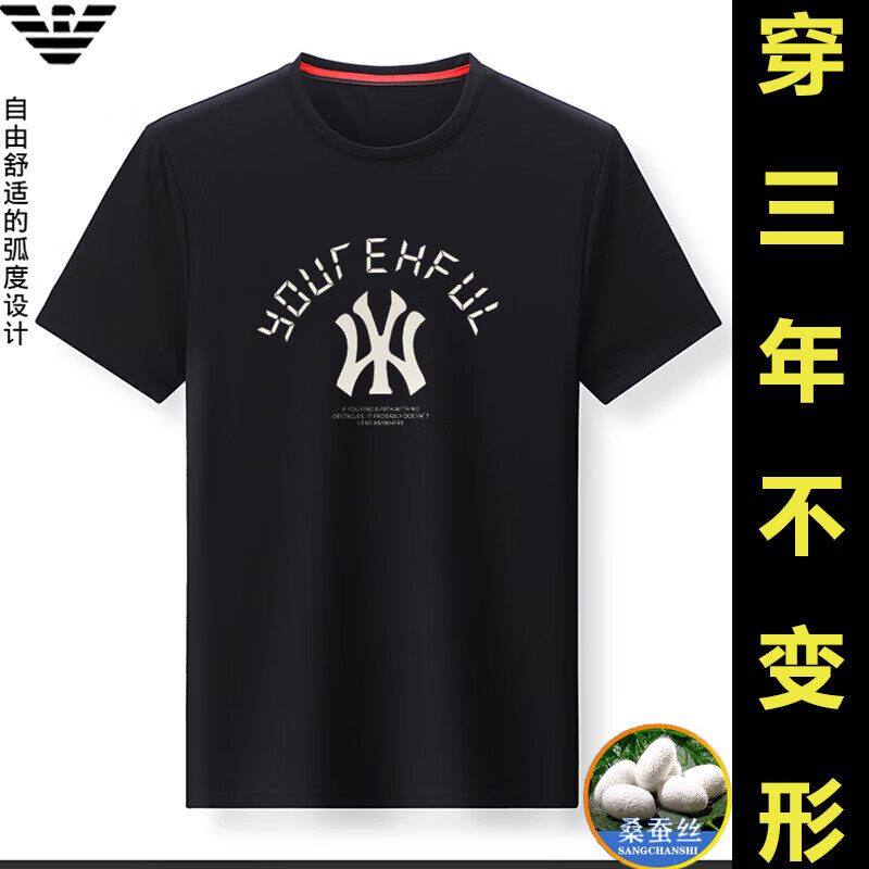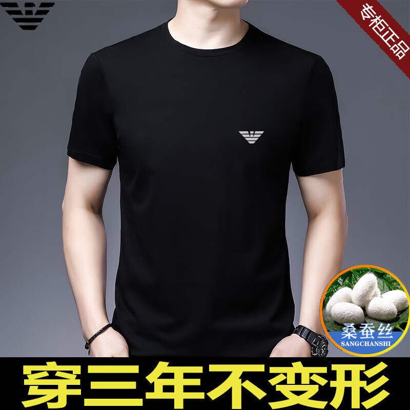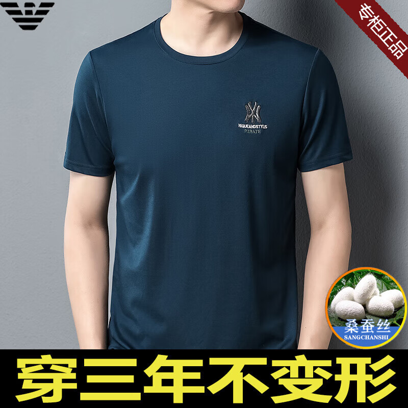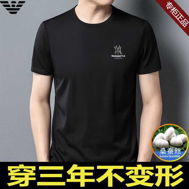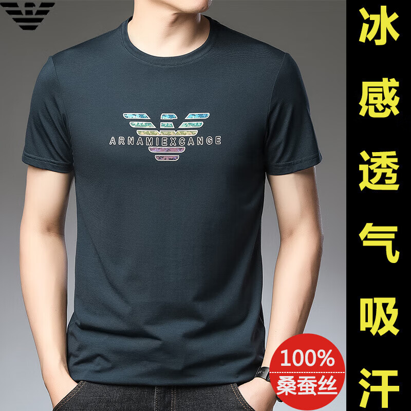 ARMANI EXCHANGE阿玛尼短袖t恤男夏季新款圆领桑蚕丝半袖T潮流体恤 782368白色 桑蚕丝冰感透气刺绣 3XL 【建议170-190斤】