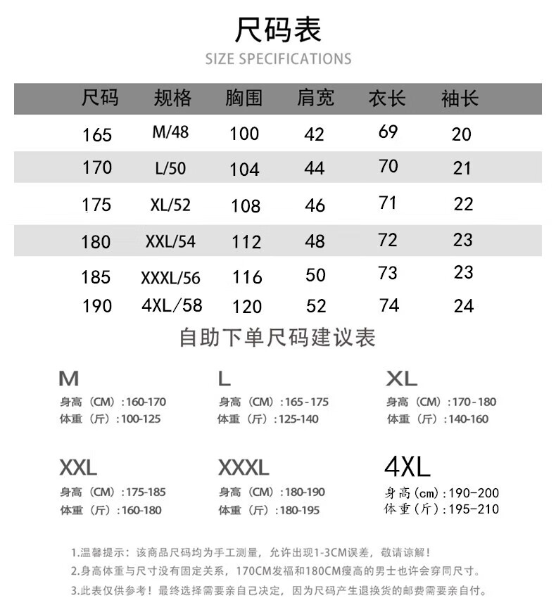 China (cm) 165 / 88-90 170 / 96-98 175 / 108-110 180 / 118-122 185 / 126-130