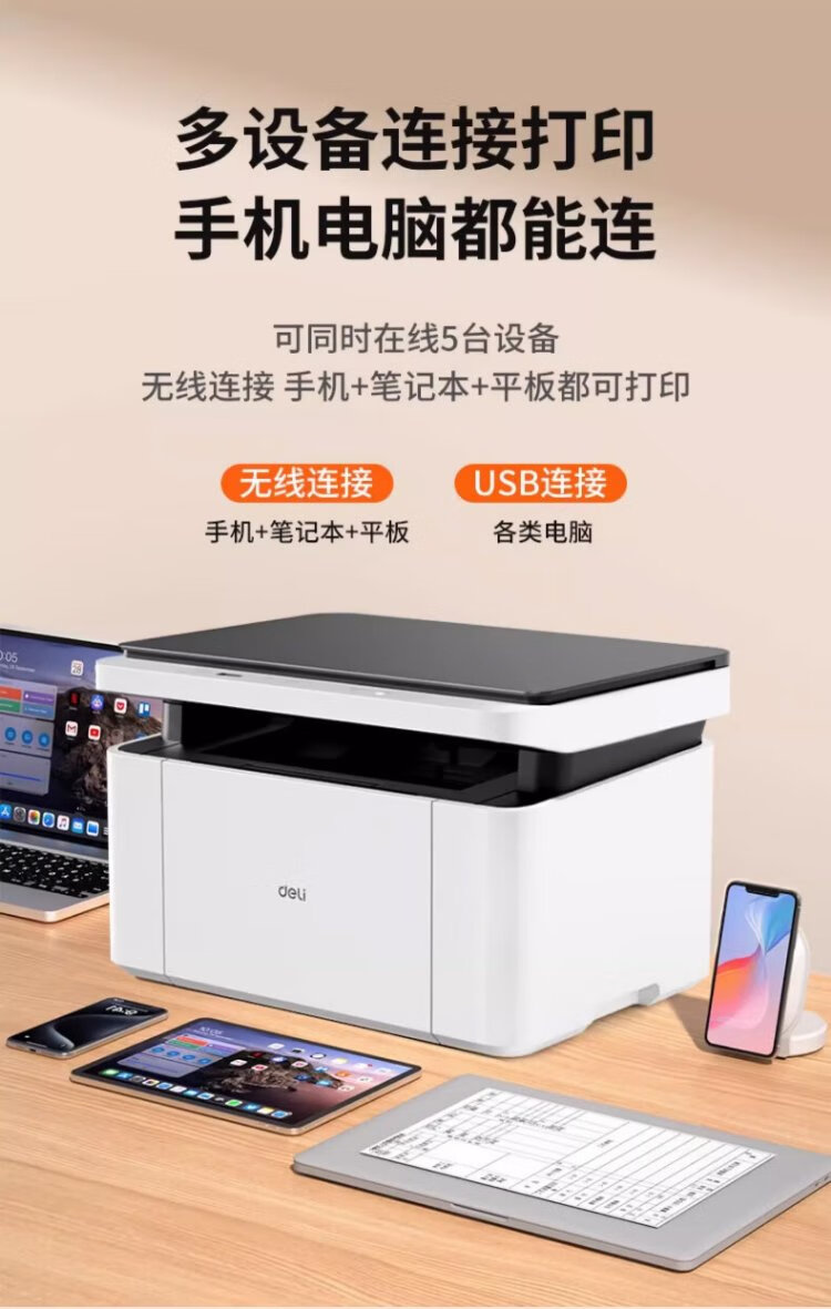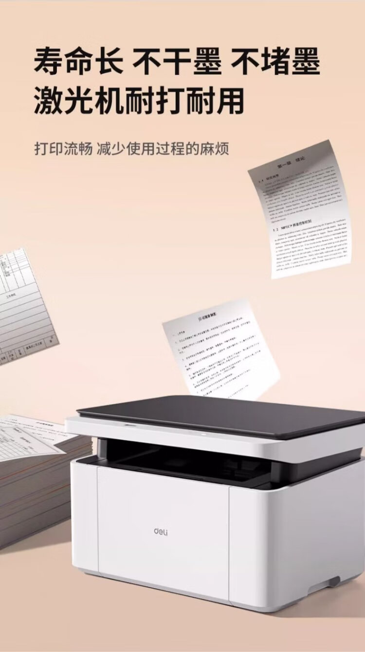 得力(deli)黑白激光打印机 自动双面复印扫描一体机 A4打印机办公专用网络手机无线wifi家用小型多功能一体机 M2300adw(自动双面+输稿器+手机无线)