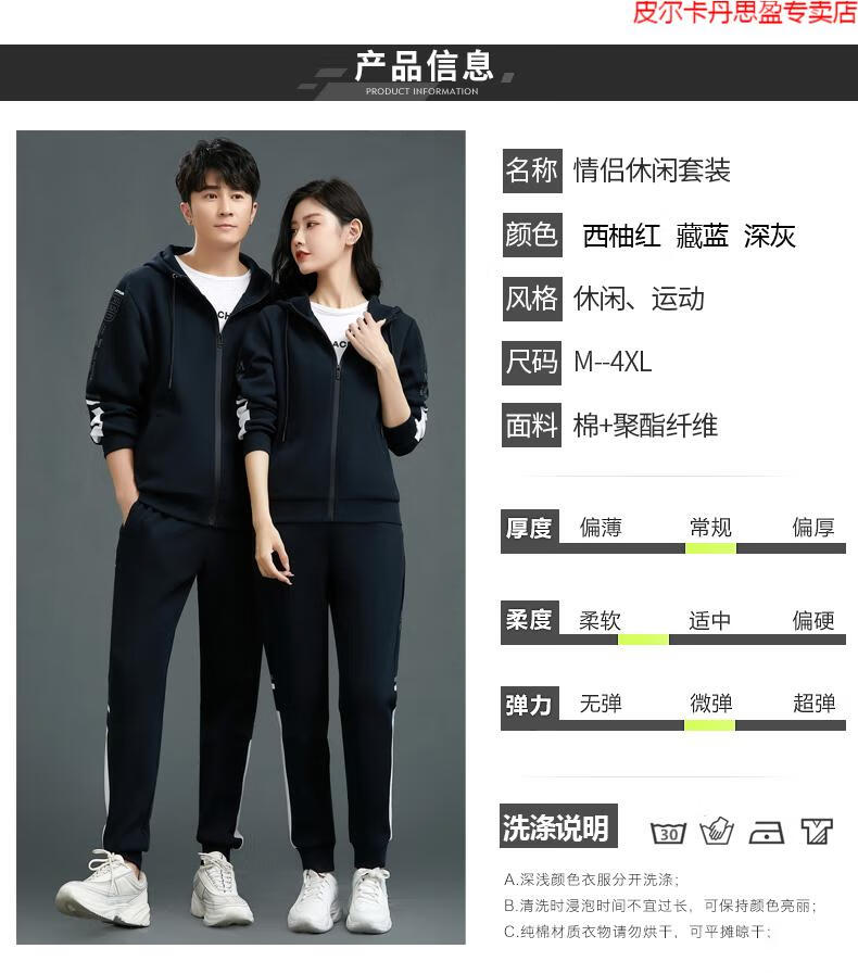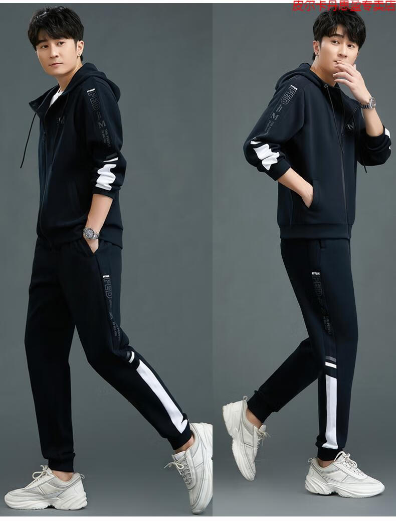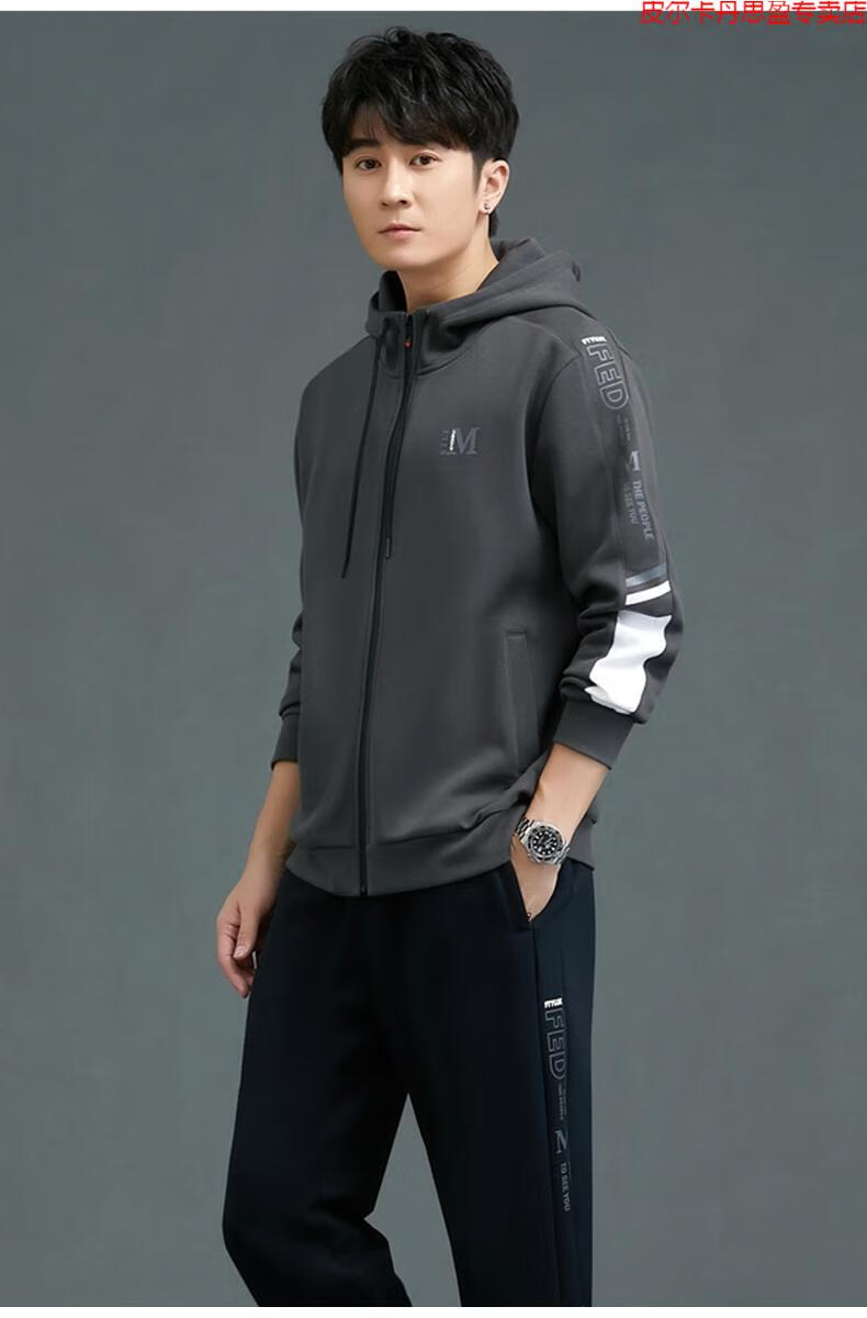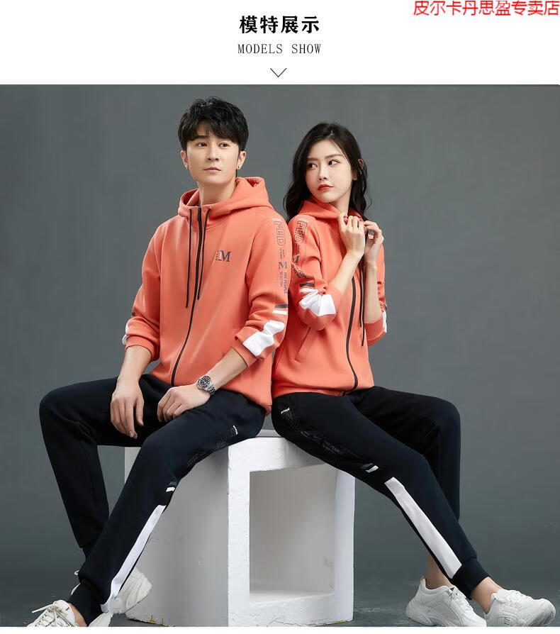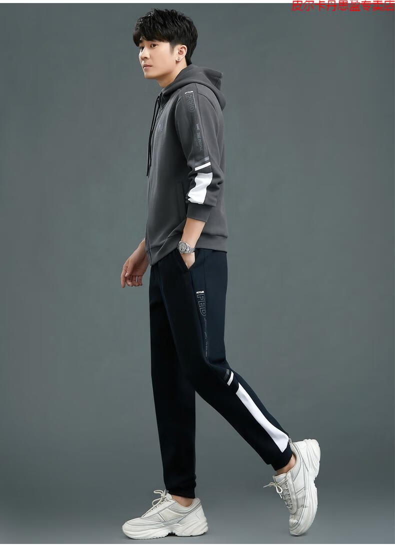 Pierre Cardin couple wear spring and autumn hooded clothes for men 2025 new trend sports suit men's casual wear sweatshirt jacket 15281 red spring and autumn jacket + pants M female weight 85-99Jin Jin is equal to within 0.5 kg