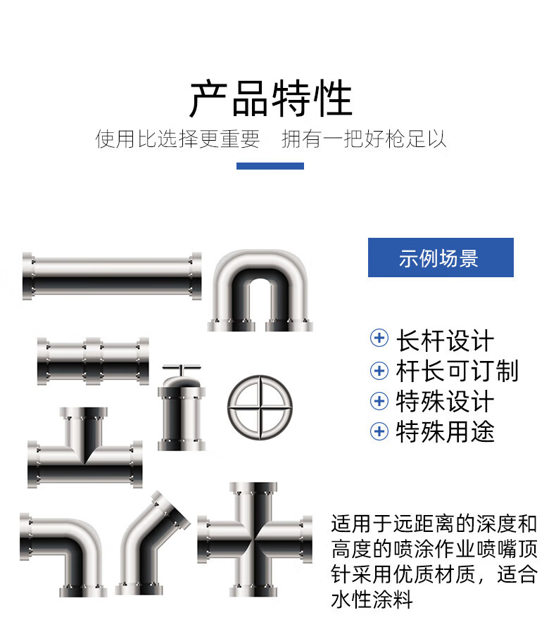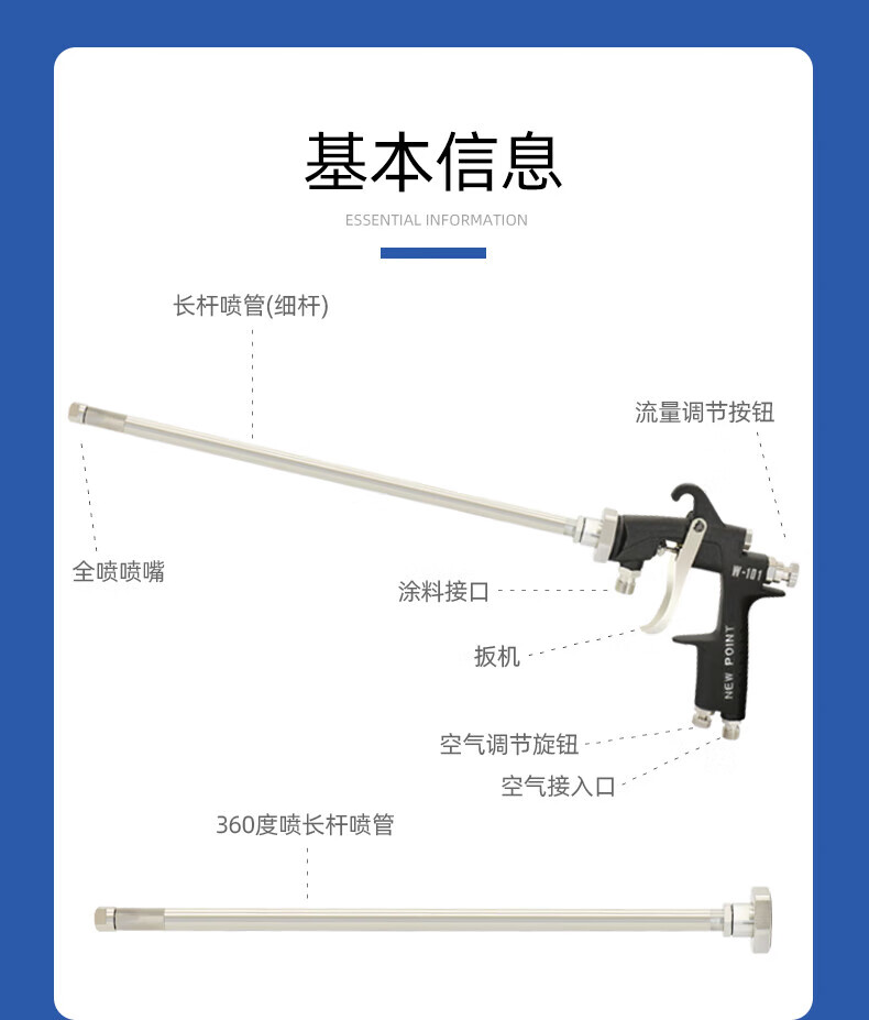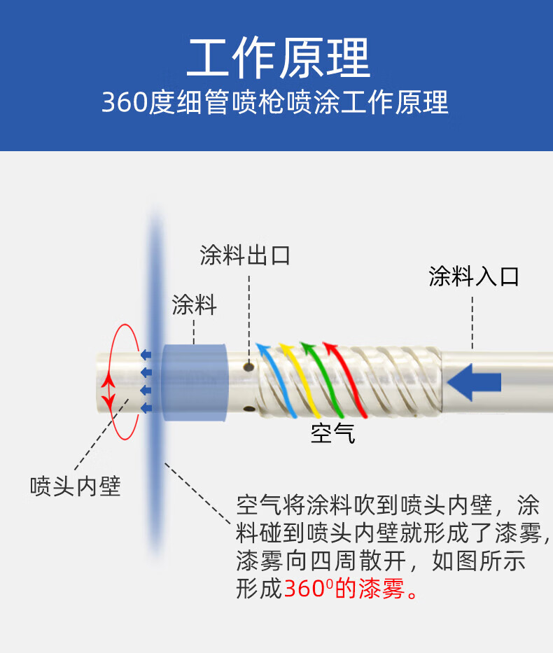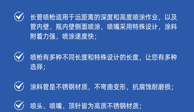 溥畔内壁长杆喷加长杆油漆管道度气动喷漆 涂料 W-12250杆长2.5米 内壁全喷 360