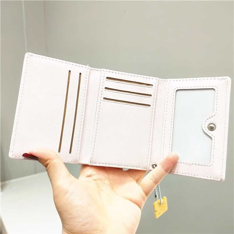 途尊奶酪钱包日系可爱卡包短款女士零钱包三折小清新刺绣质感卡包夹 黄色【无挂件】