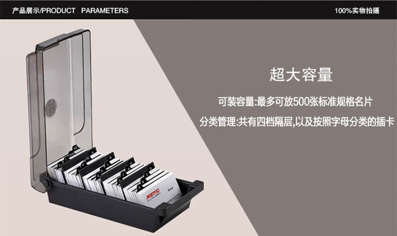 Large capacity business card box, business card storage box, batch storage and classification business card holder, 500 cards/867