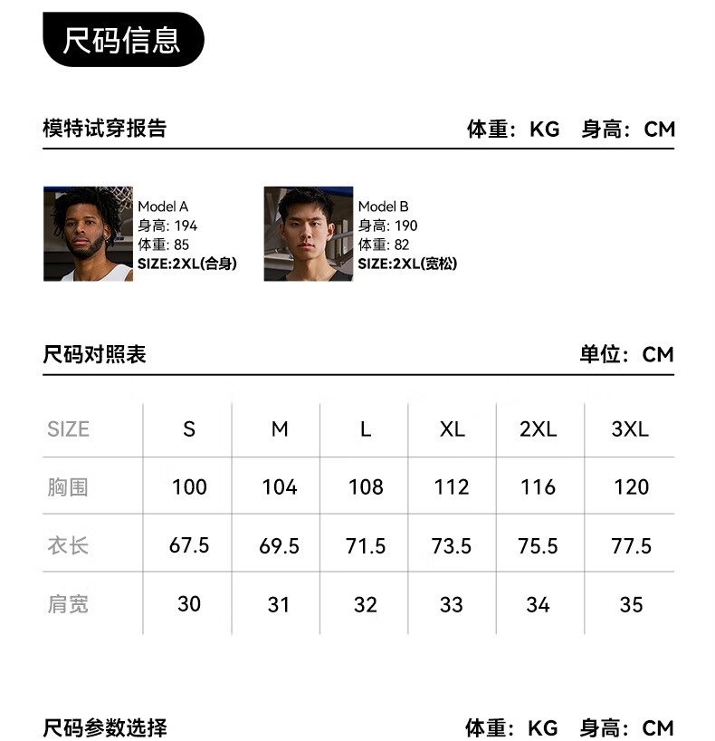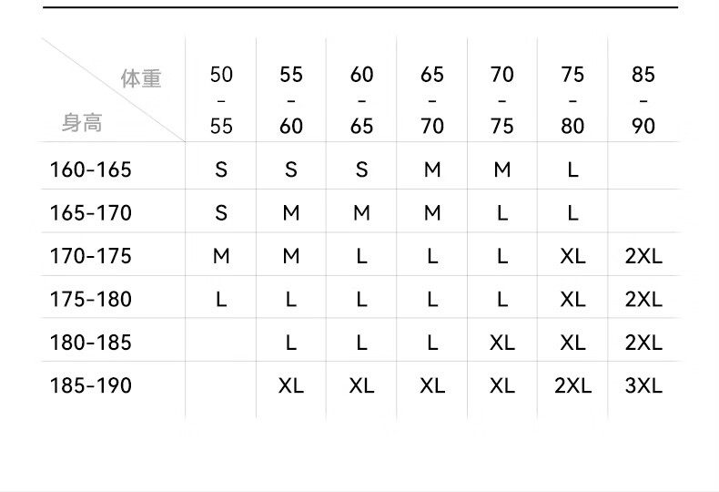 China (cm) 165 / 88-90 170 / 96-98 175 / 108-110 180 / 118-122 185 / 126-130