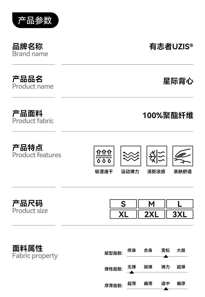 有志者(UZIS)运动背心男篮球夏季轻薄速干美式健身训练无袖T恤[星际] 黑色 XL
