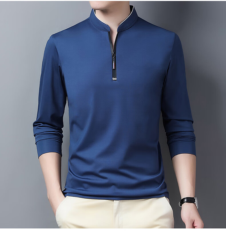 Let's bear middle-aged high-end men's long-sleeved T-shirt 2025 spring and autumn casual stand-up collar sweatshirt half-zip bottoming shirt top 6623 black M 95-115Jin Jin is equal to 0.5 kg