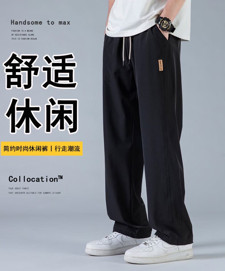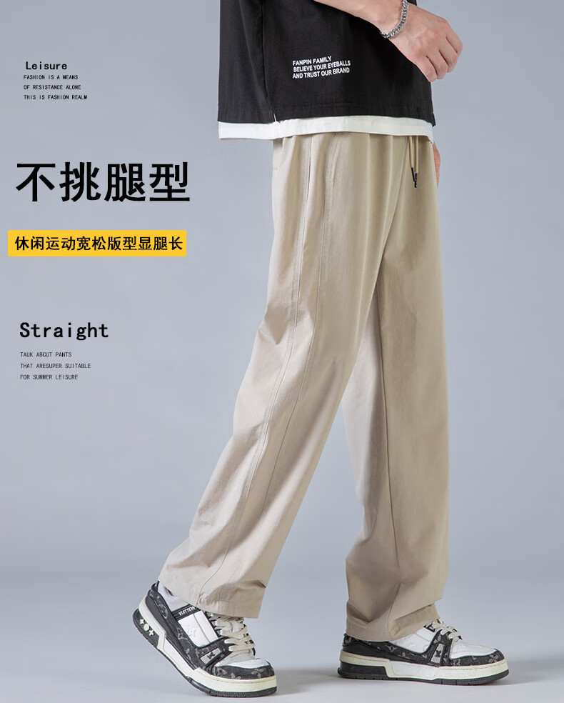 JEEP SPIRIT休闲裤男2025春秋季新款宽松直筒潮流时尚百搭阔腿运动长裤子男 6609灰色 XL 约130-150斤可穿