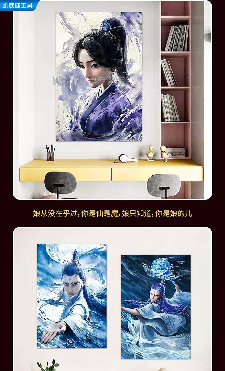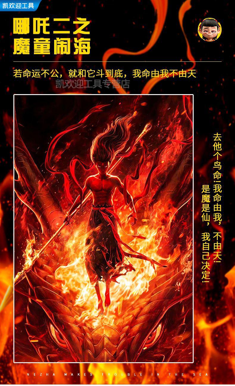 【现货】哪吒之魔童闹海电影海报【高清防水】哪吒之魔童闹海电影海报影院装饰画卡通动画动漫儿童房背景墙壁 1381-少年哪吒 40x60cm