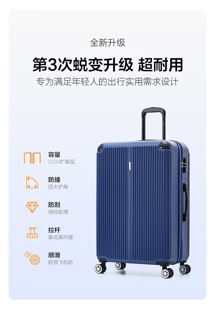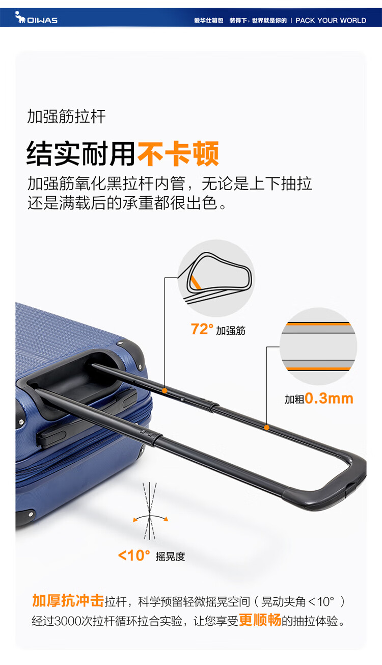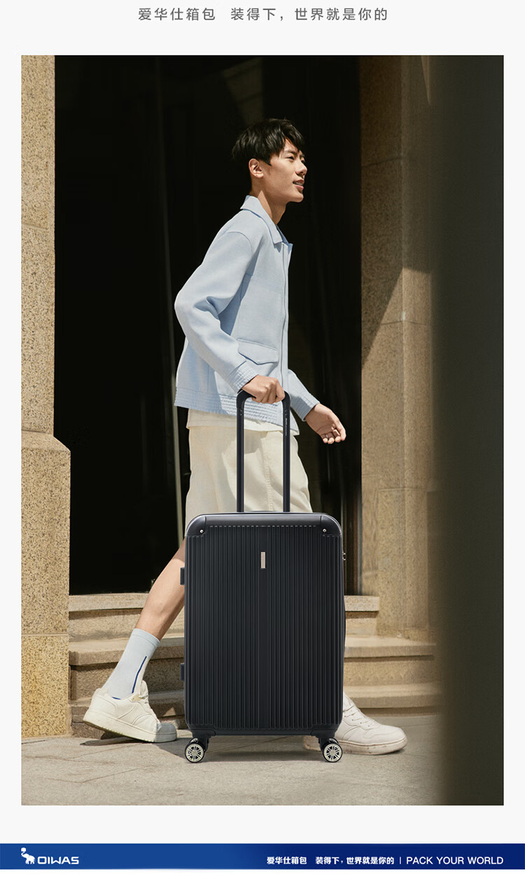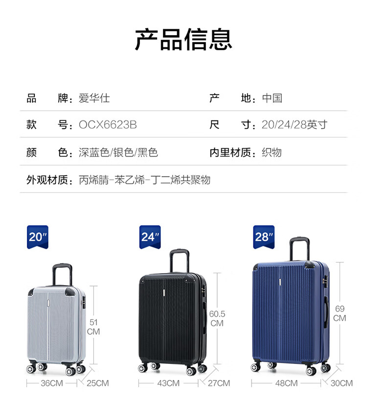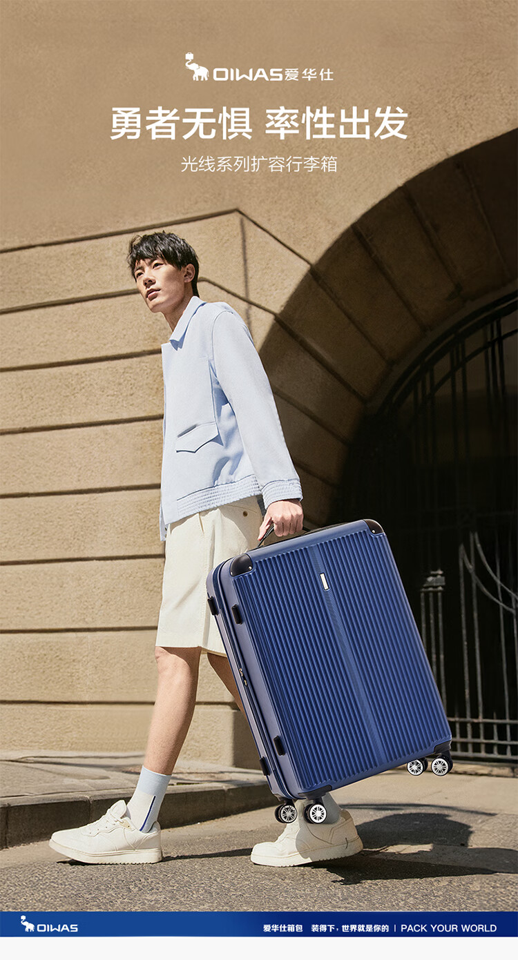 爱华仕耐磨防刮防撞大容量拉杆箱商务出行旅游结实耐用行李箱登机箱 磨砂天堂蓝-大容量可扩展6628 24英寸