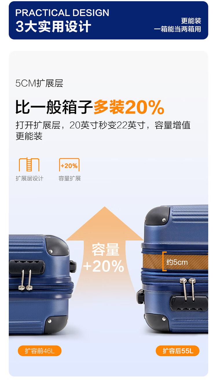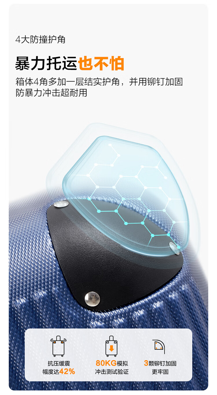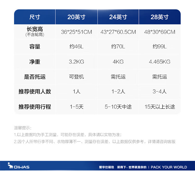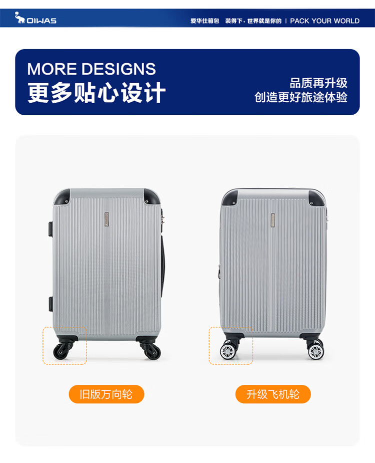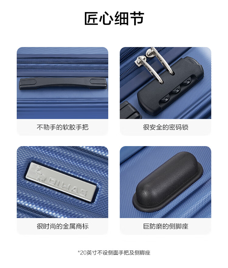 爱华仕耐磨防刮防撞大容量拉杆箱商务出行旅游结实耐用行李箱登机箱 磨砂天堂蓝-大容量可扩展6628 24英寸