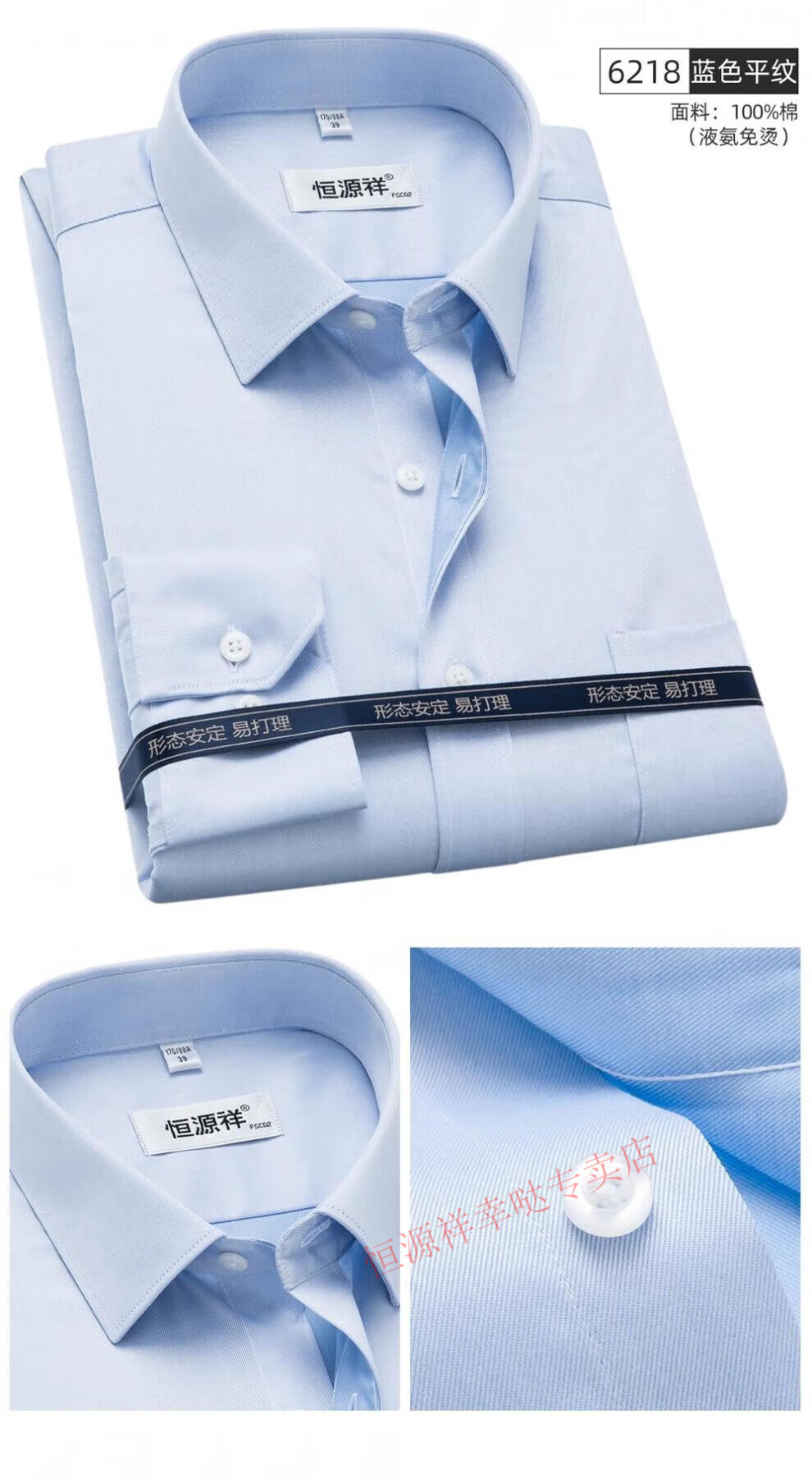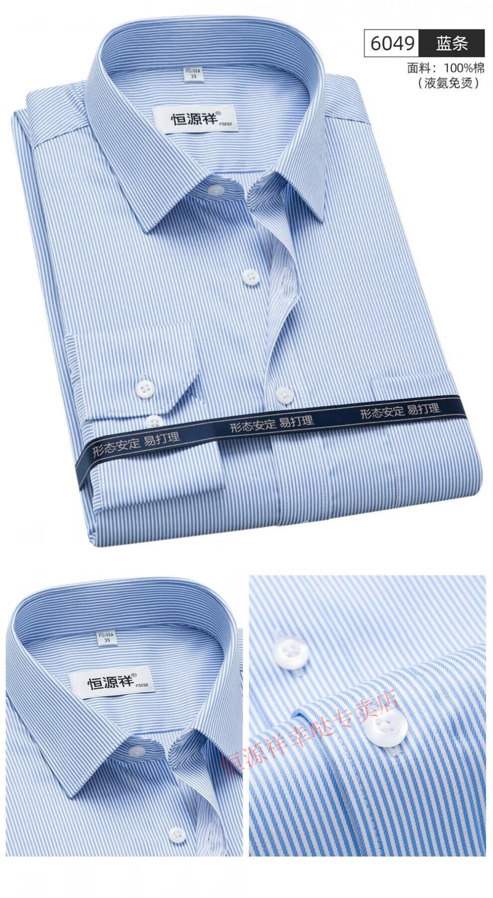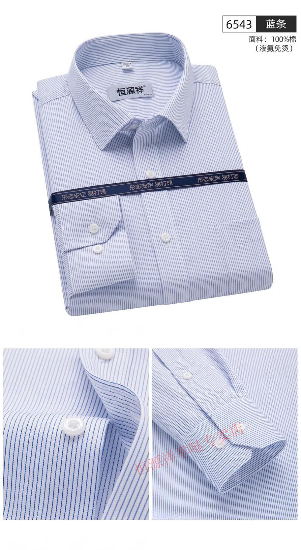 恒源祥100%纯棉免烫长袖白衬衫男士高档春秋季商务休闲正装西装衬衣男装 长 袖6623浅蓝条纹【纯全新100】 38 [体重100斤-125斤]